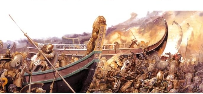 A primeira metade do livro é fundamentalmente sobre os acontecimentos que precederam o início da Guerra – não só se debruçando sobre os elementos divinos (as querelas entre os deuses que acabam por envolver os comuns mortais), como sobre a história das personagens decisivas. Dá-nos também uma visão dos ideais por detrás da Guerra, pois a fuga de Helena não é senão uma desculpa, uma justificação para partir em campanha.