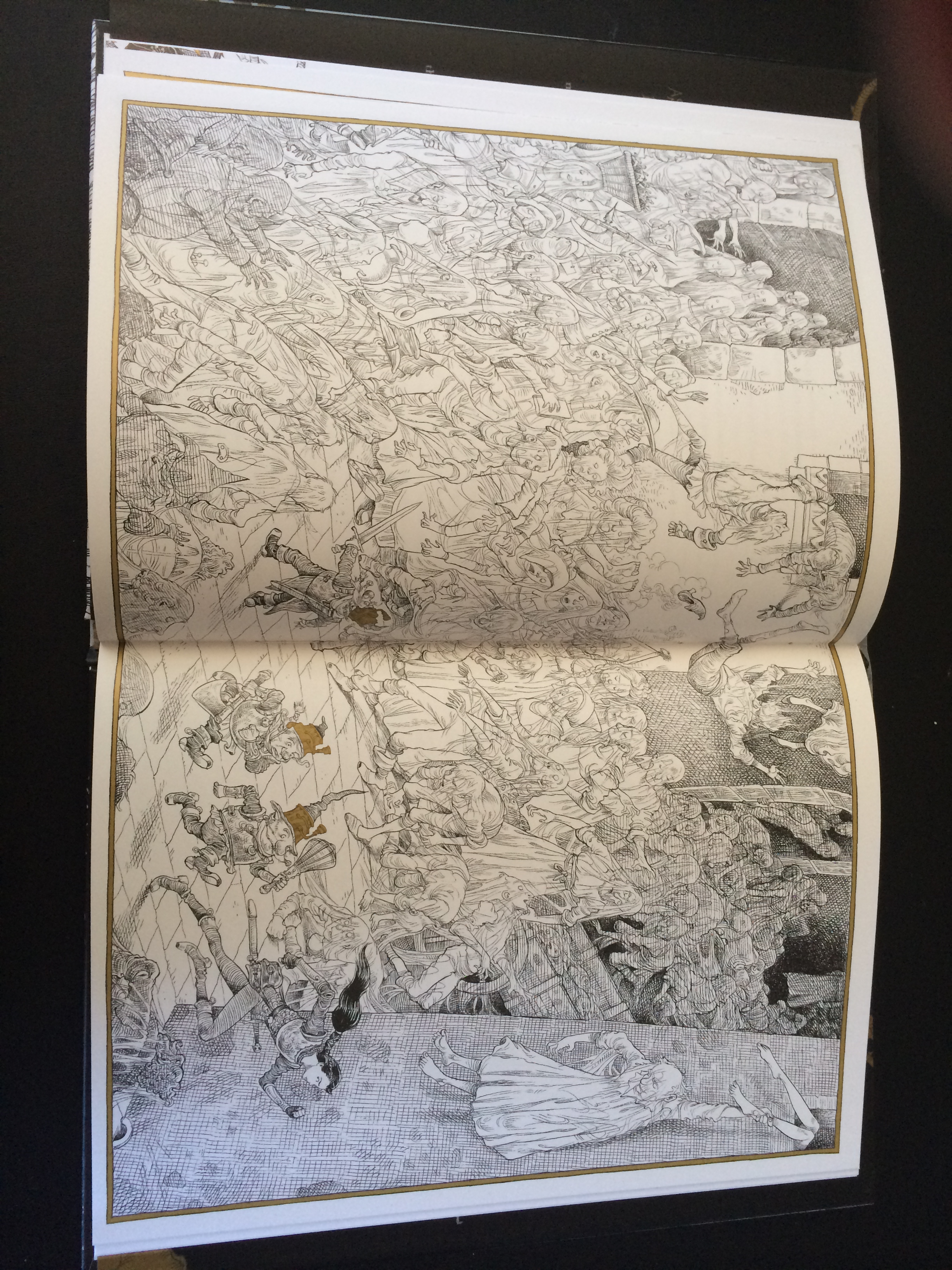 O livro tem cerca de 70 páginas mas a história ocupa apenas metade delas, sendo que o resto está ocupado por belíssimas imagens a preto, branco e dourado, que traduzem alguma da magia, mas também apreensão face ao desconhecido que espera as personagens – imagens de beleza sombria, não pelas cores, mas pelas expressões, onde os adormecidos são como fantasmas, desenhados a um traço mais fino.