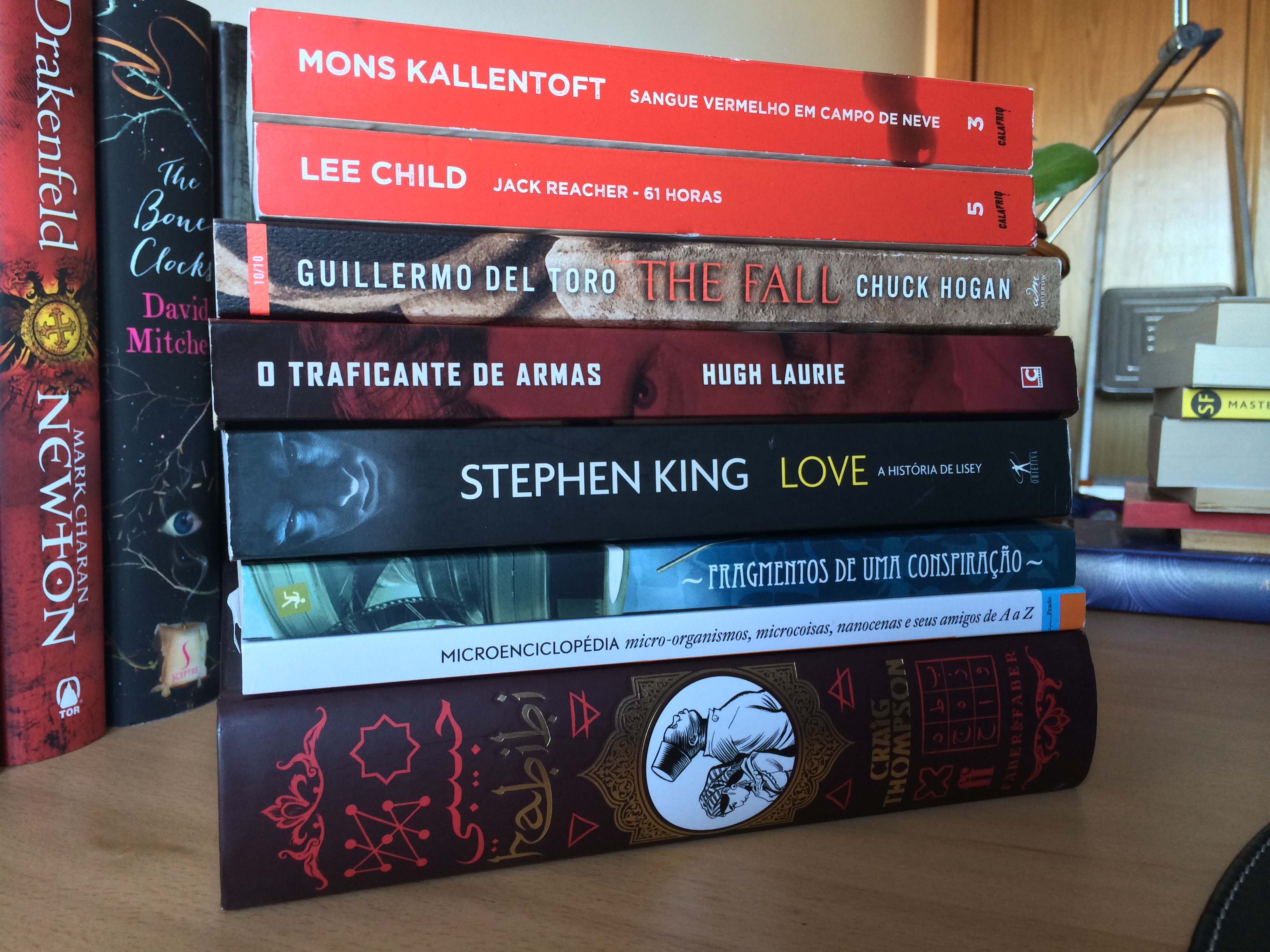 As passagens pela Fyodor andam-me a fazer mal à carteira, ou não tivesse aproveitado para adquirir a Advance Reader’s Copy do Fall (da série de Guilhermo del Toro e Chuck Hogan que inspirou a série The Strain), O Traficante de Armas de Hugh Larie (tenho grandes expectativas em relação a este, já que me foi descrito como tendo algum do humor mordaz da personagem Dr. House) e Love de Stephen King (será desta que dou uma segunda oportunidade ao autor?). E sim, apesar de ser uma livraria de livros em segunda mão, estes estão novos, novinhos. E há lá mais.