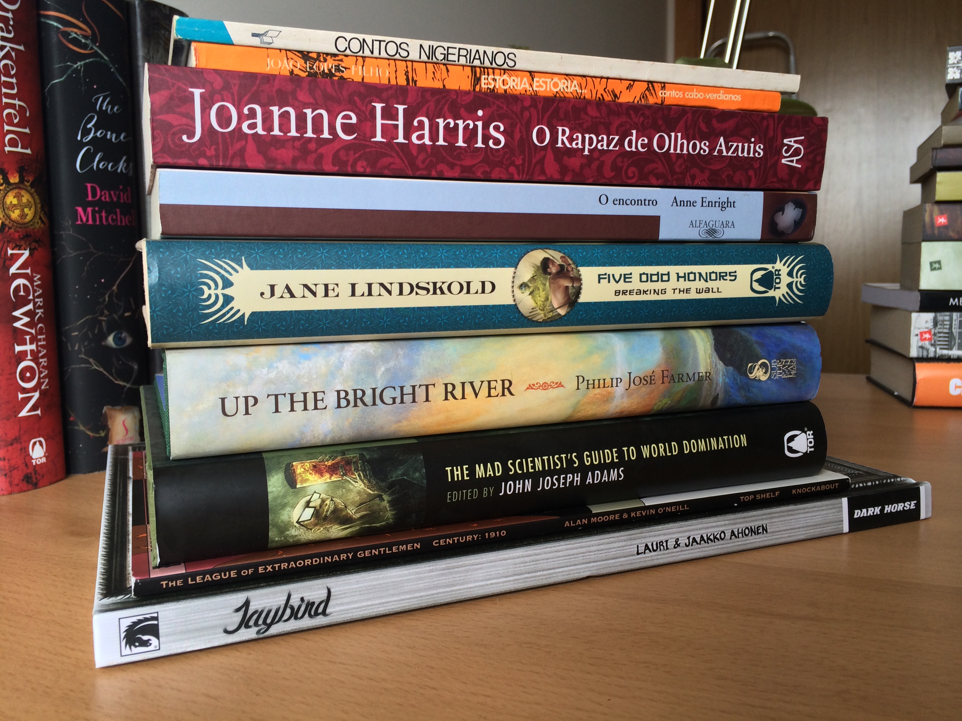 Estes foram adquiridos através de grupos de venda de livros usados do facebook, onde se arranjam até livros nunca lidos, como novos, por preços que rondam os 5 ou 7 € (já com portes). Foi assim também que adquiri The Leaue of Extraordinary Gentlemen Century: 1910 e O Rapaz de Olhos Azuis de Joanne Harris, a autora de Chocolate que consegue ter histórias bastante interessantes para além do aparente romance melado, como Xeque ao Rei (que aconselho a leitura em inglês).