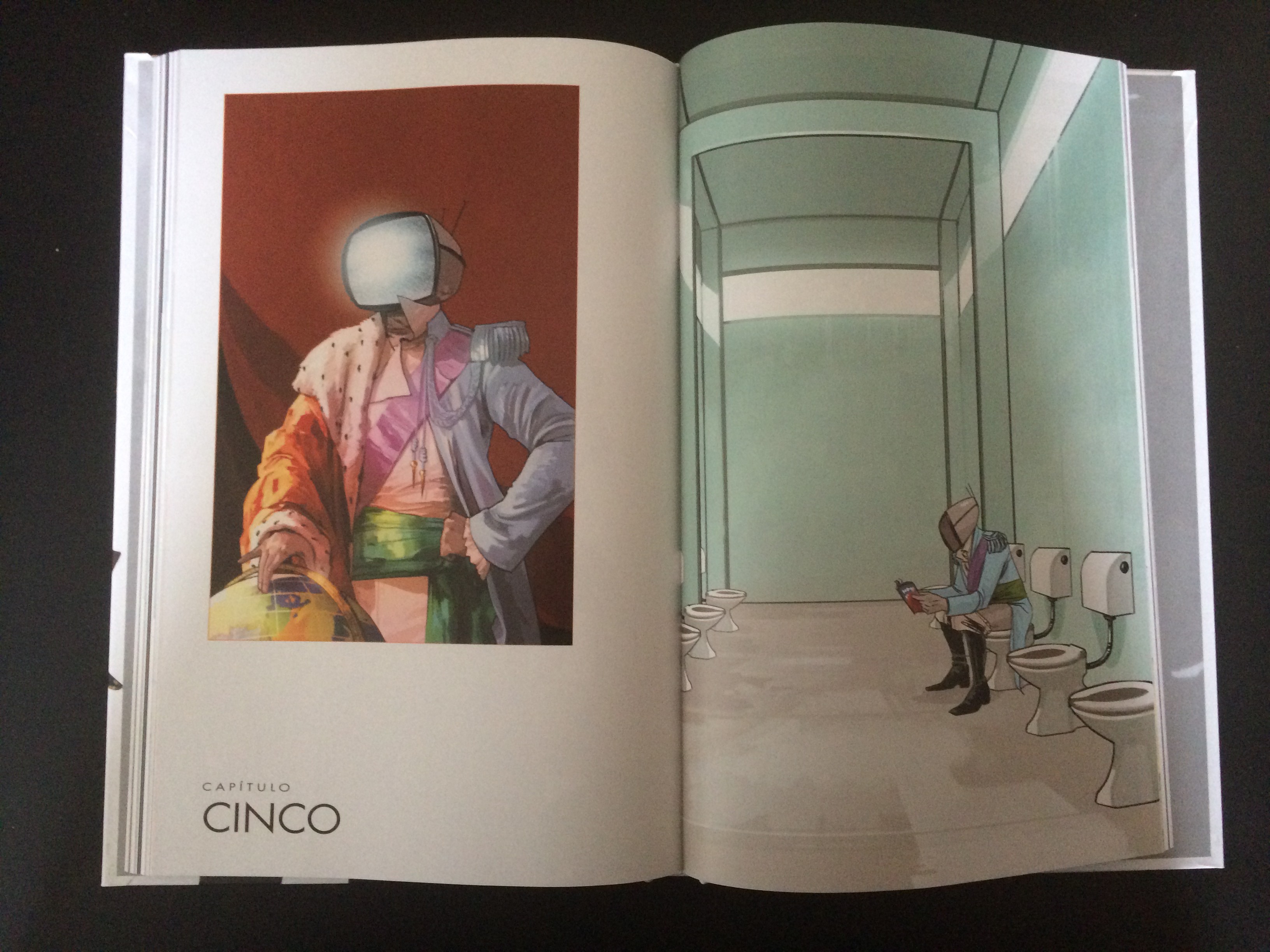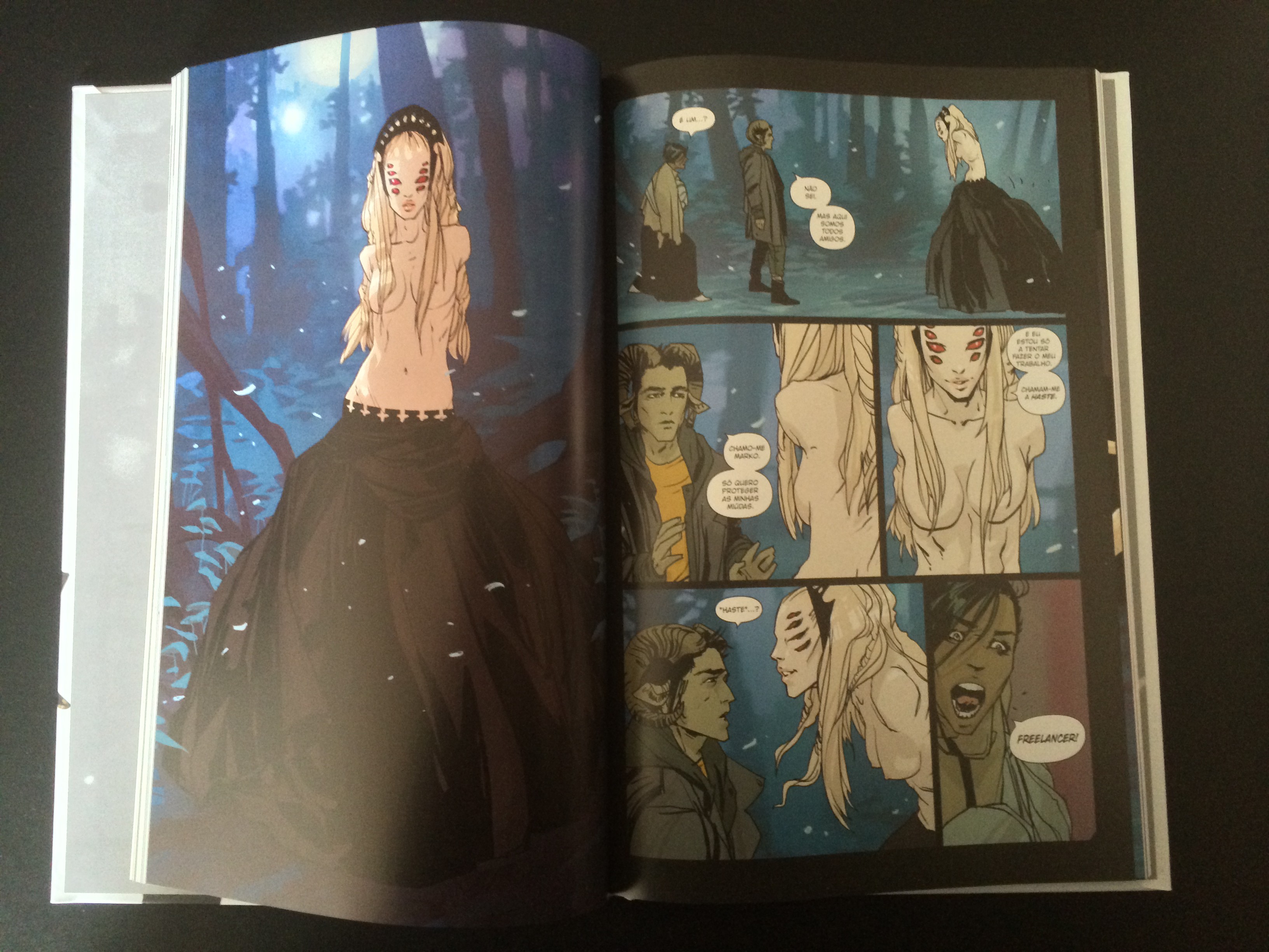 Foi com grande surpresa que vi, no Fórum Fantástico, esta edição portuguesa de grande qualidade e preço acessível (menos de 9€) – capa dura de visual simples, interior em papel cuidado como convem a banda desenhada tão colorida e movimentada quanto esta. Para além deste volume encontrei também os primeiros das séries Tony Chu (Detective Canibal) e Fatale, com a mesma qualidade e preço. O receio de sempre? Que não seja toda publicada em português e acabe por ficar na prateleira com uma série incompleta, ou com volumes dispersos em vários formatos. Felizmente, a editora já anunciou que está a preparar os segundos volumes.