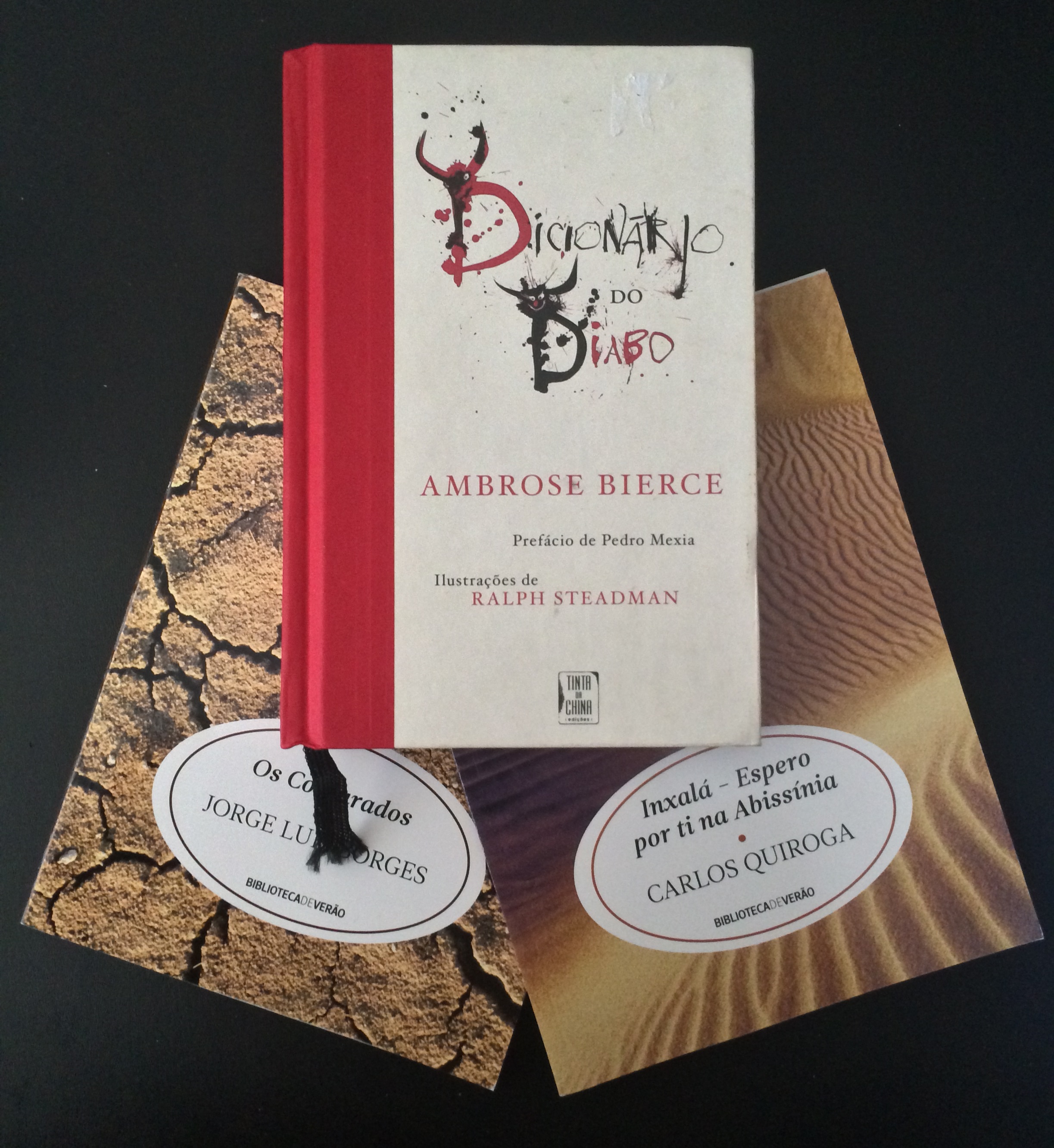No topo encontra-se Dicionário do Diabo de Ambrose Bierce. Esta pequena, mas caricata edição pela Tinta da China é literalmente um pequeno dicionário ilustrado onde são expostos conceitos conhecidos sob uma outra perspectiva. Eis parte da sinopse: