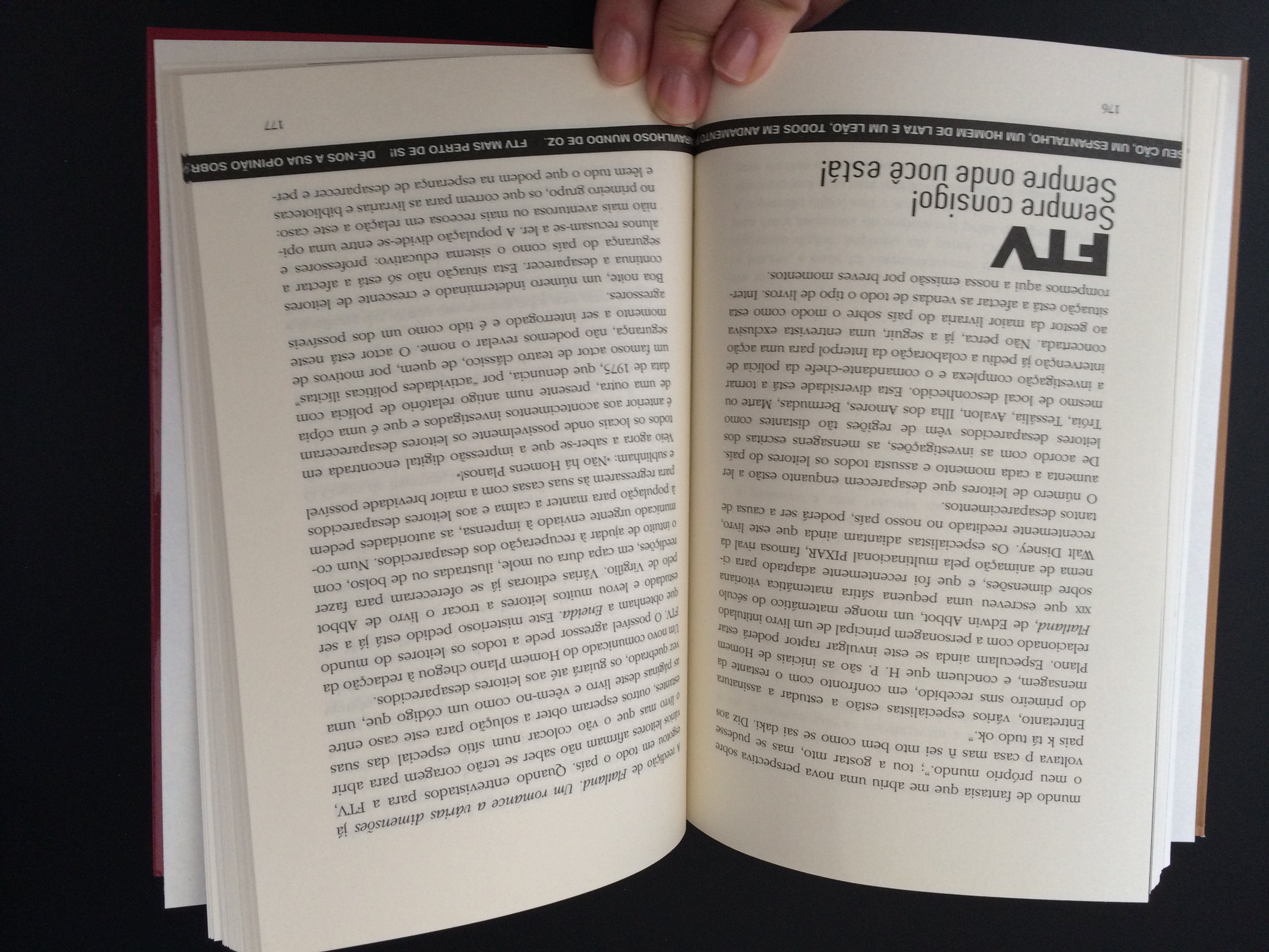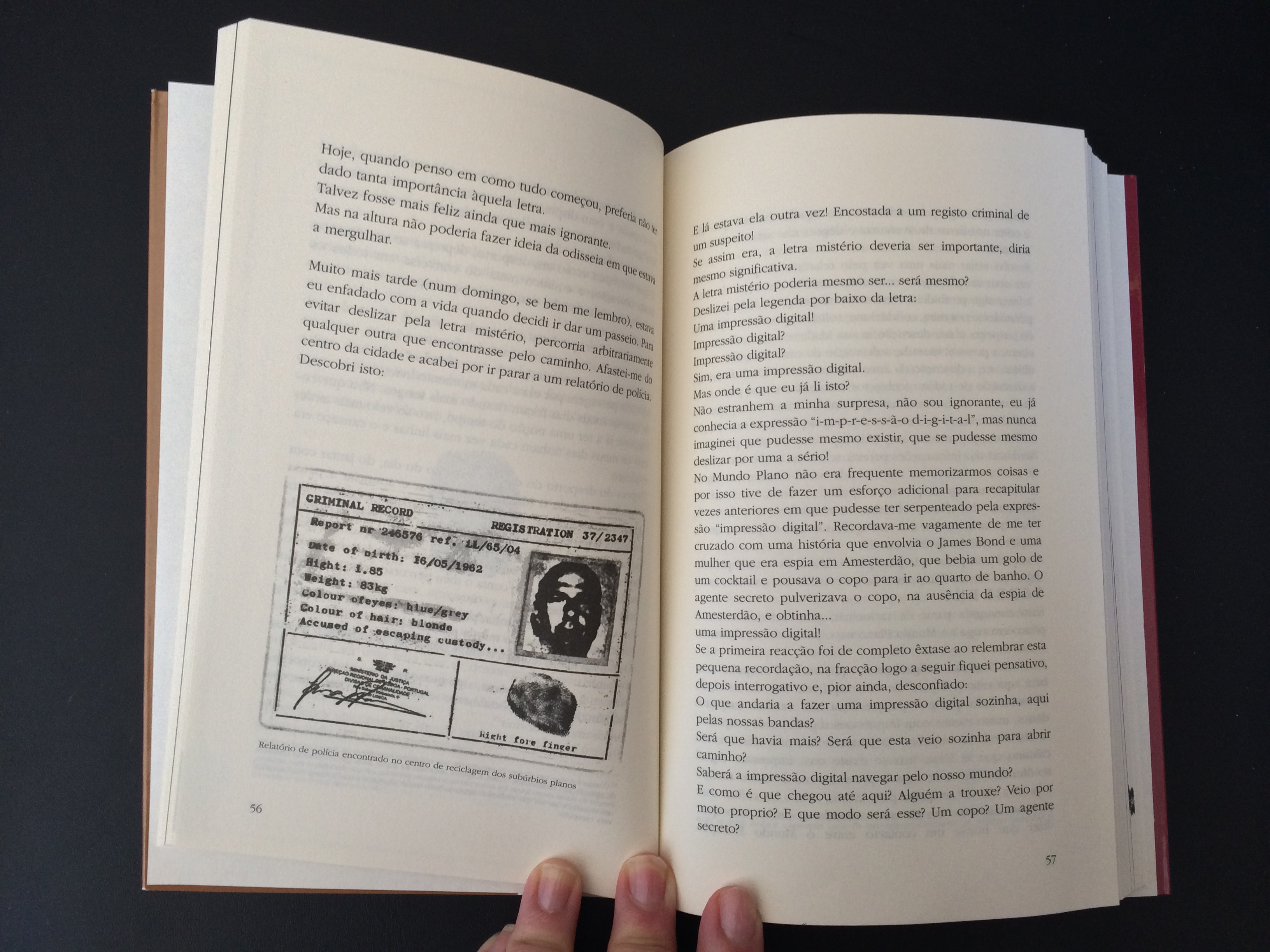 Em Para cima e não para Norte um homem vive pacificamente no mundo das duas dimensões sem considerar sequer a existência de uma terceira dimensão com homens. Entre a rotina familiar e os passeios por páginas de aventuras de 007, o quotidiano é perturbado quando encontra uma letra diferente de todas as outras, mais complexa e intrincada – uma impressão digital.
