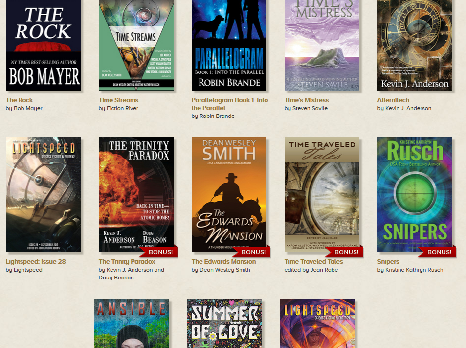 Pela Humble Bundle chega mais um conjunto de livros de ficção científica, onde, pelo preço que se quiser se pode adquirir um bom conjunto de livros. Como é habitual quem oferecer um pouco mais que a oferta média ganha mais uns quantos livros, e quem oferecer mais do que 15 dólares, ganha ainda mais livros. Eis o link. De realçar que o conjunto conta com Beasts of Tabat de Cat Rambo (que adquirido isoladamente custa mais de 7 dólares).