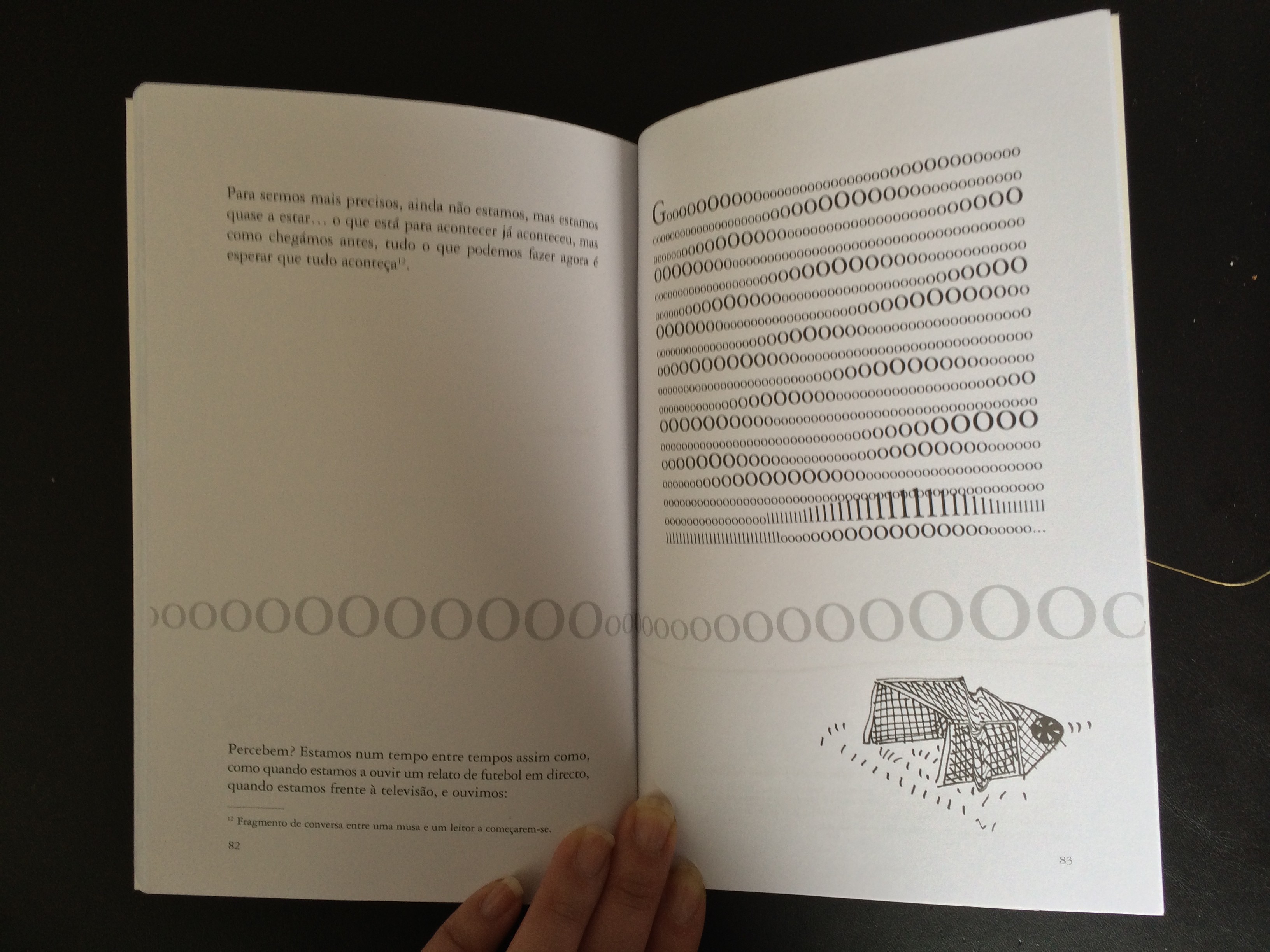 Pequeno volume publicado pela Caminho, destaca-se visualmente pelas mesmas razões que Para Cima e não para Norte, com texto disperso pela página, algo que confere algo mais à experiência de leitura, pela forma como se nos apresentam as letras. Mas se foi algo que resultou muito bem no contexto de Para Cima e não para Norte, aqui foi algo que achei de uso exagerado.