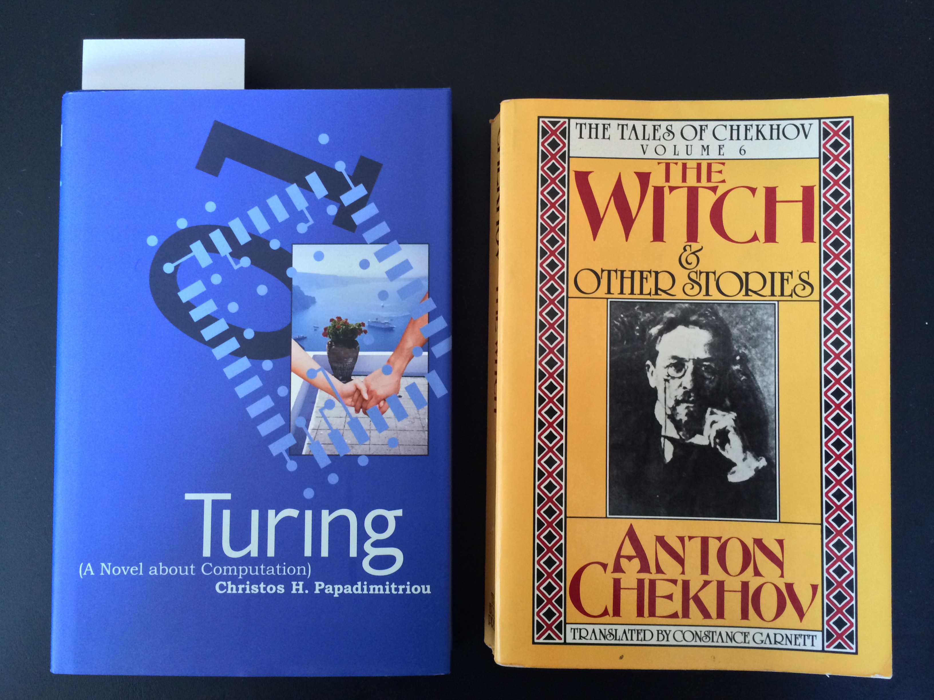 Segue-se Turing de Christos H. Papamidimitriou e The Witch & Other Stories, uma colectânea de contos de Anton Chekhov. O primeiro é um curioso volume caracterizado como ficção científica mas que, até ao momento, me parece mais uma mistura entre romance e divulgação científica, em que as personagens principais têm um tórrido romance, e nos entretantos encontram um poderoso e inteligente motor de busca. Deixo-vos a sinopse: