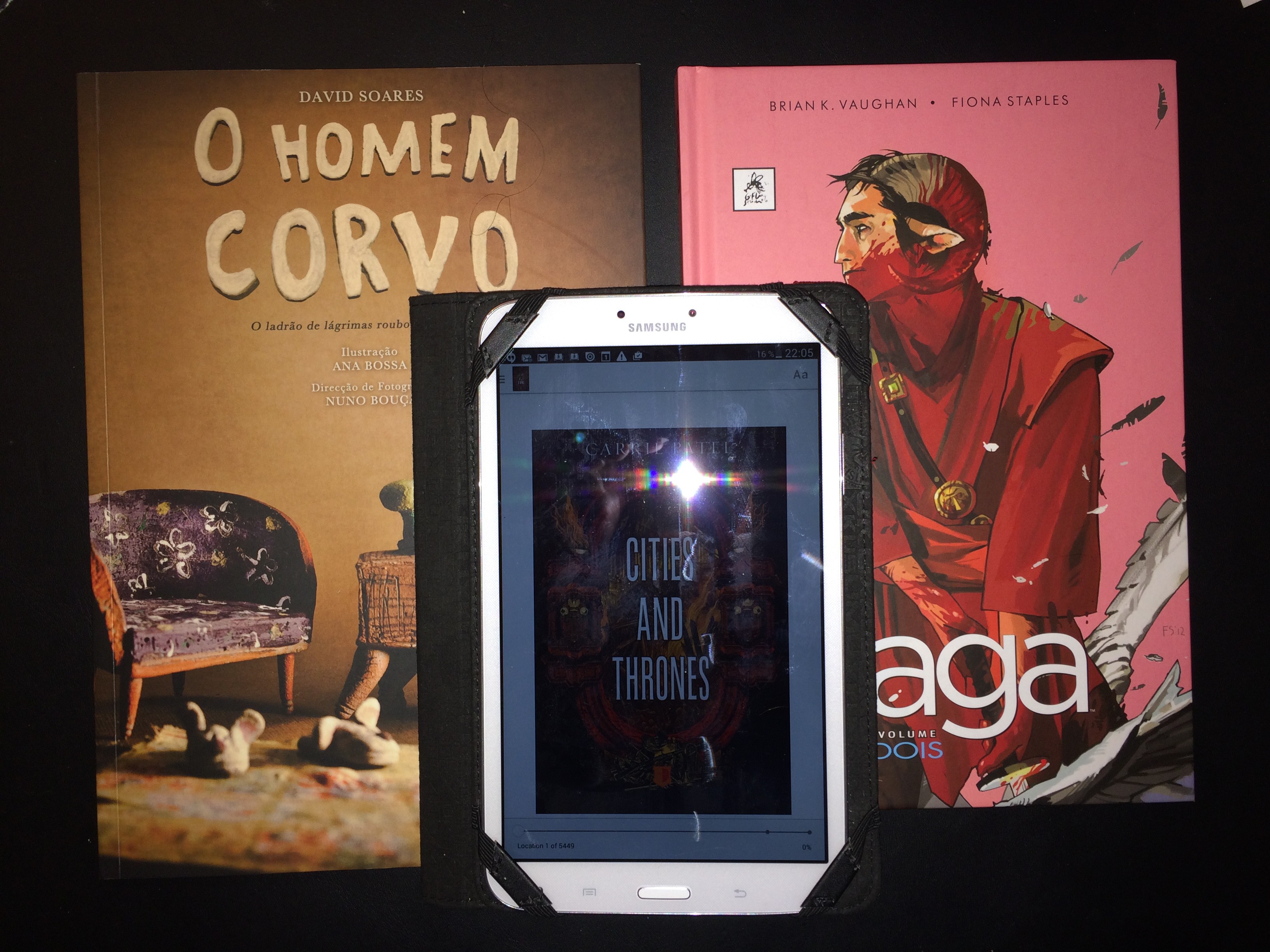 71 – Cities and Thrones – Carrie Patel – Apesar de constituir o segundo de uma saga fantástica, lê-se bem isoladamente, apresentando uma cidade estado que foi tomada por uma revolução. A anterior rígida estrutura hierárquica, dominada pelos unhas brancas (característica da aristocracia que se pode dar ao luxo de manter a mãos arranjadas) é substituída por um grupo revolucionário que poderá não estar preparado para aguentar o dia-a-dia de uma grande cidade. Centrando-se demasiado em duas personagens, possui longos períodos parados que, não criando suspense, pouco acrescentam à história. Tratando-se de uma cópia fornecida pela editora, o comentário mais completo apenas será publicado na data do lançamento, início de Julho;