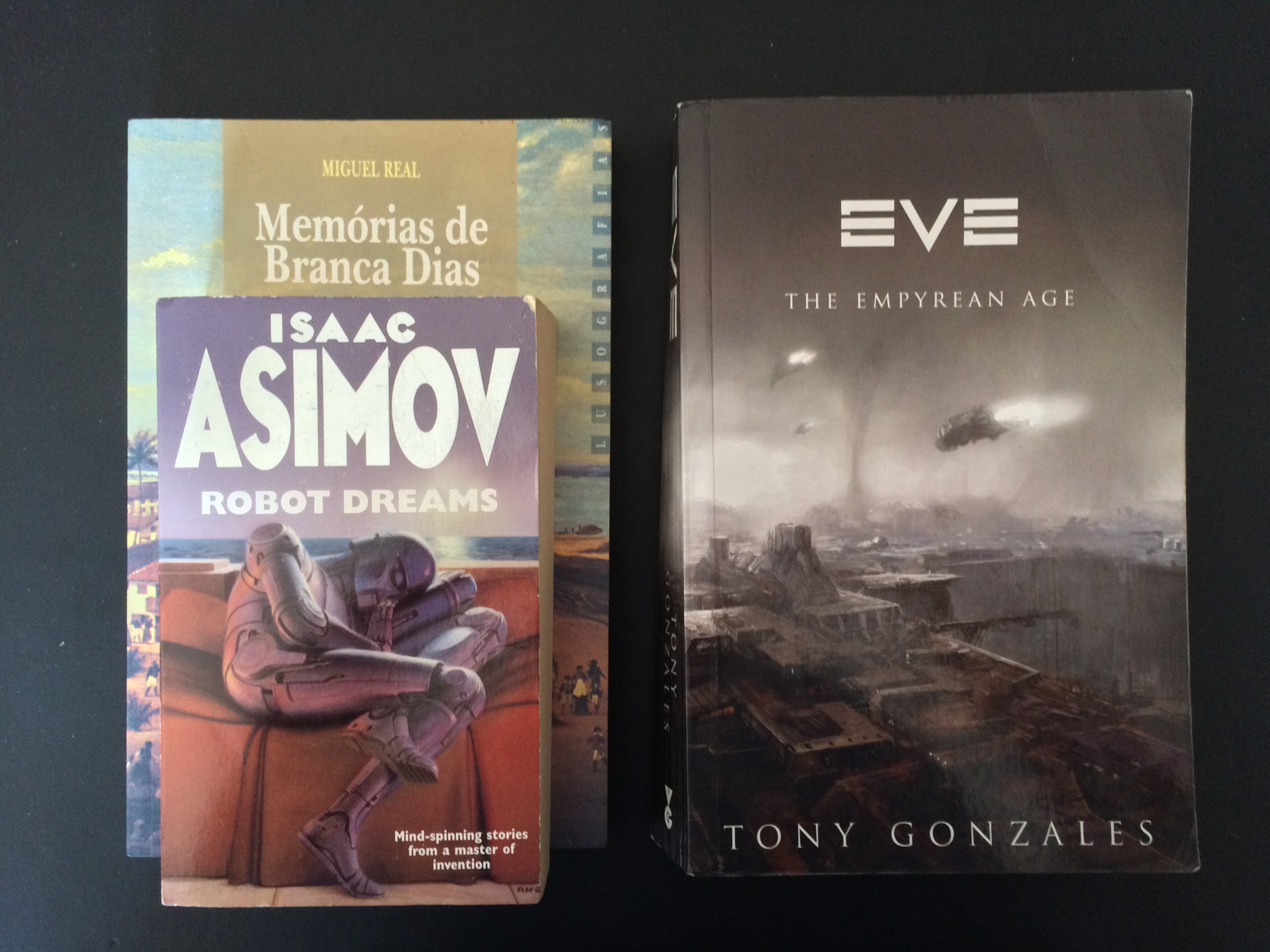 Entre passagem na FNAC com cheque oferta, e a livraria Fyodor, estas foram as últimas aquisições. No topo encontra-se Robot Dreams, uma compilação de histórias de Isaac Asimov cujo título me relembra o tão conhecido Do Androids Dream of Electric Sheep de Philip K. Dick. A compilação abre com Little Lost Robot, um conto publicado na Astounding Science Fiction que terá sido adaptado na série televisiva Out of this world. Entre as restantes histórias destaca-se também a história que dá título ao livro, Robot Dreams que terá sido nomeada para um prémio Hugo, ou The Martian Way, uma das escolhidas dentro das melhores novelas de 1965.