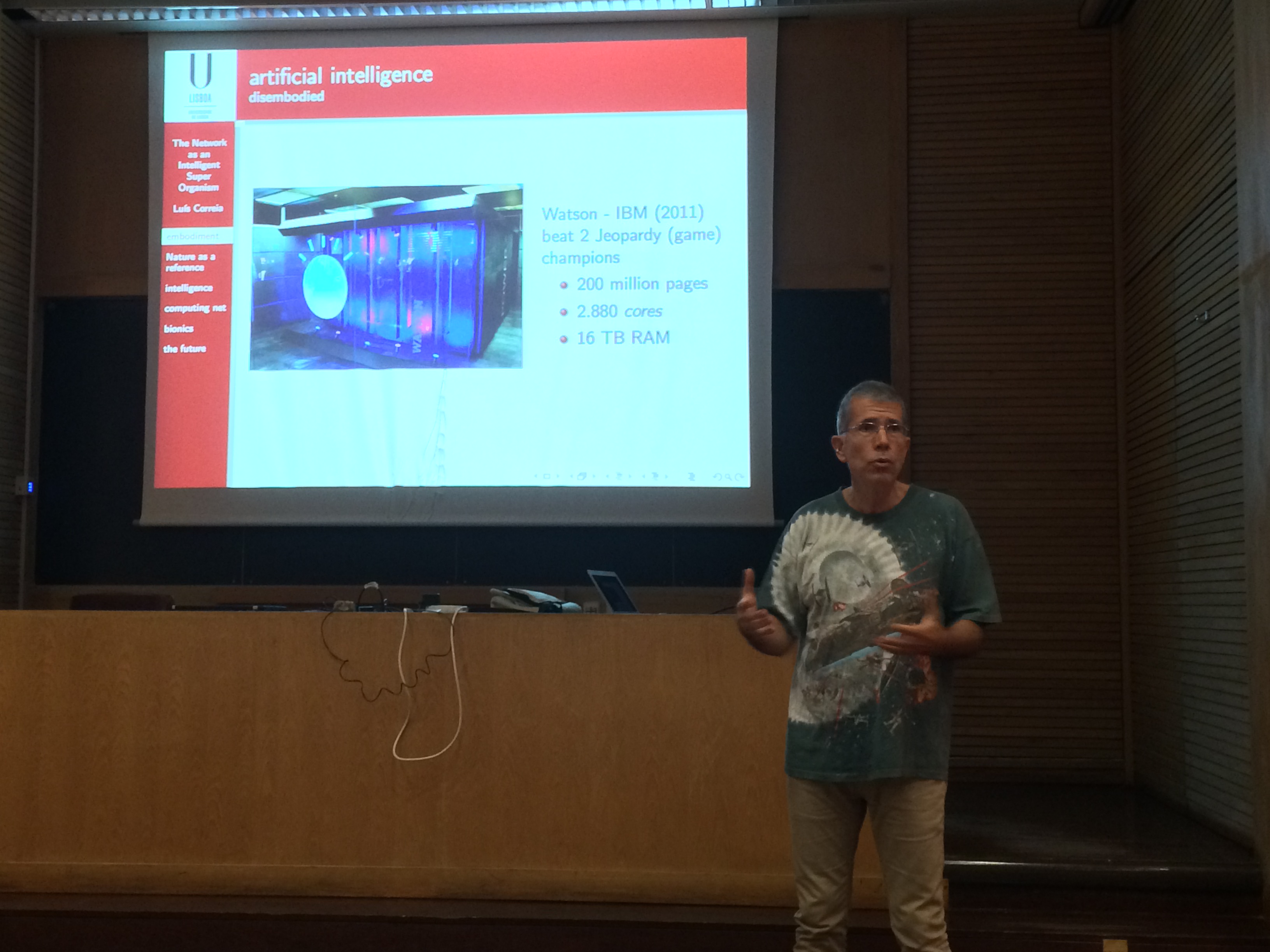 Aproveitei passar no evento no Sábado à tarde e assistir à palestra de Luís Correia (FCUL) com o título The network as an inteligent super-organism. Com uma pequena história dos computadores, Luís Correia chegou aos computadores mais avançados que já conseguem, através do acesso a grandes volumes de informação, deduzir respostas menos directas, o que constituirá um grande passo no caminho para a inteligência artificial.