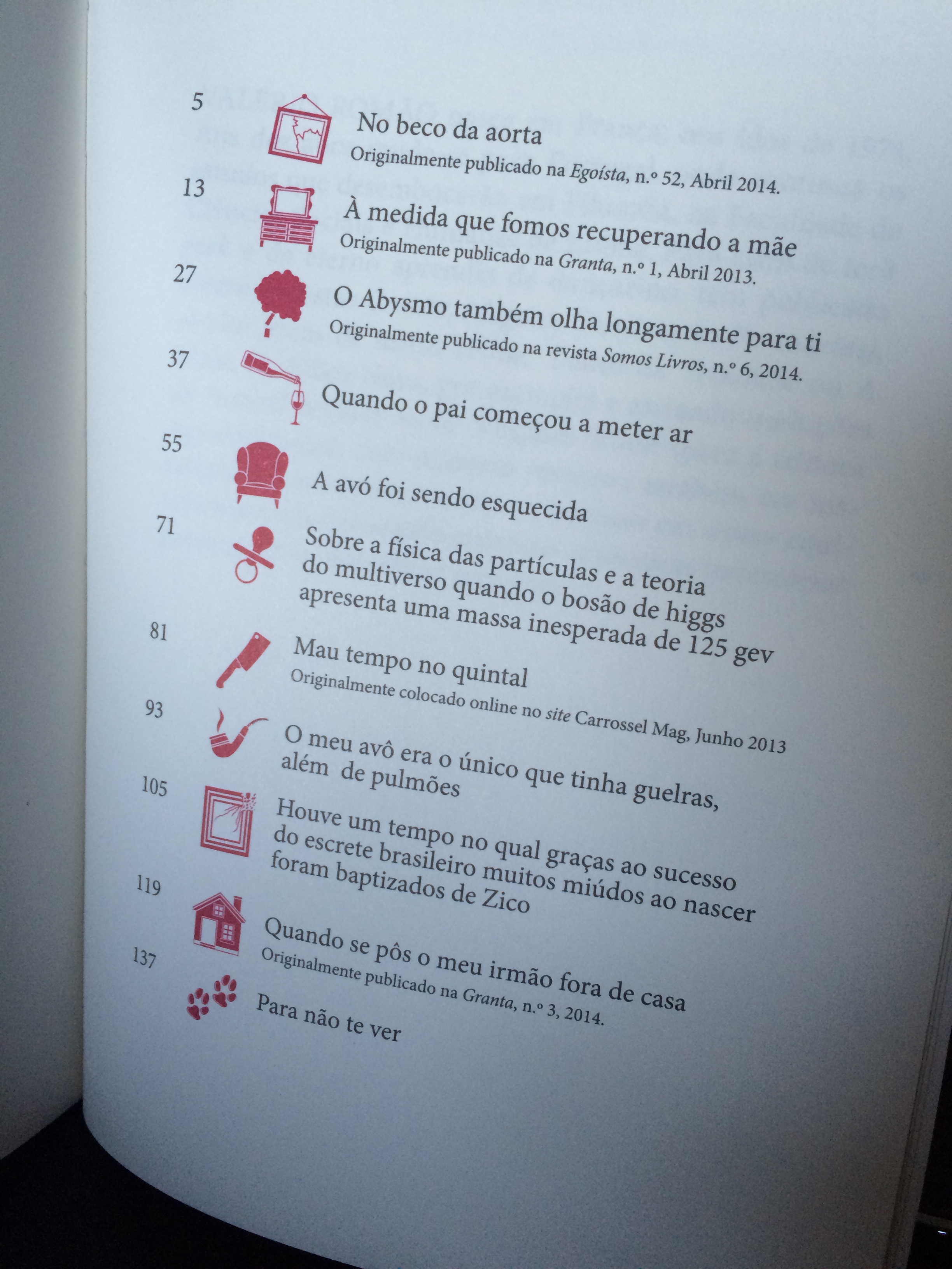 Mas não é o caso em Da Família, uma colectânea de contos que foi apresentada recentemente em conjunto com o livro da Joana Bértholo, na Casa Portuguesa há umas semanas, em conversa moderada por Joana Neves, a responsável pelo Projecto Contos Não Vendem (onde podemos ouvir bons contos, dos mais variados géneros). Da Família contem 11 histórias, quase todas centradas ou partindo da família, cada uma contendo uma sinalética diferente nas suas páginas, num trabalho gráfico bastante interessante e peculiar.