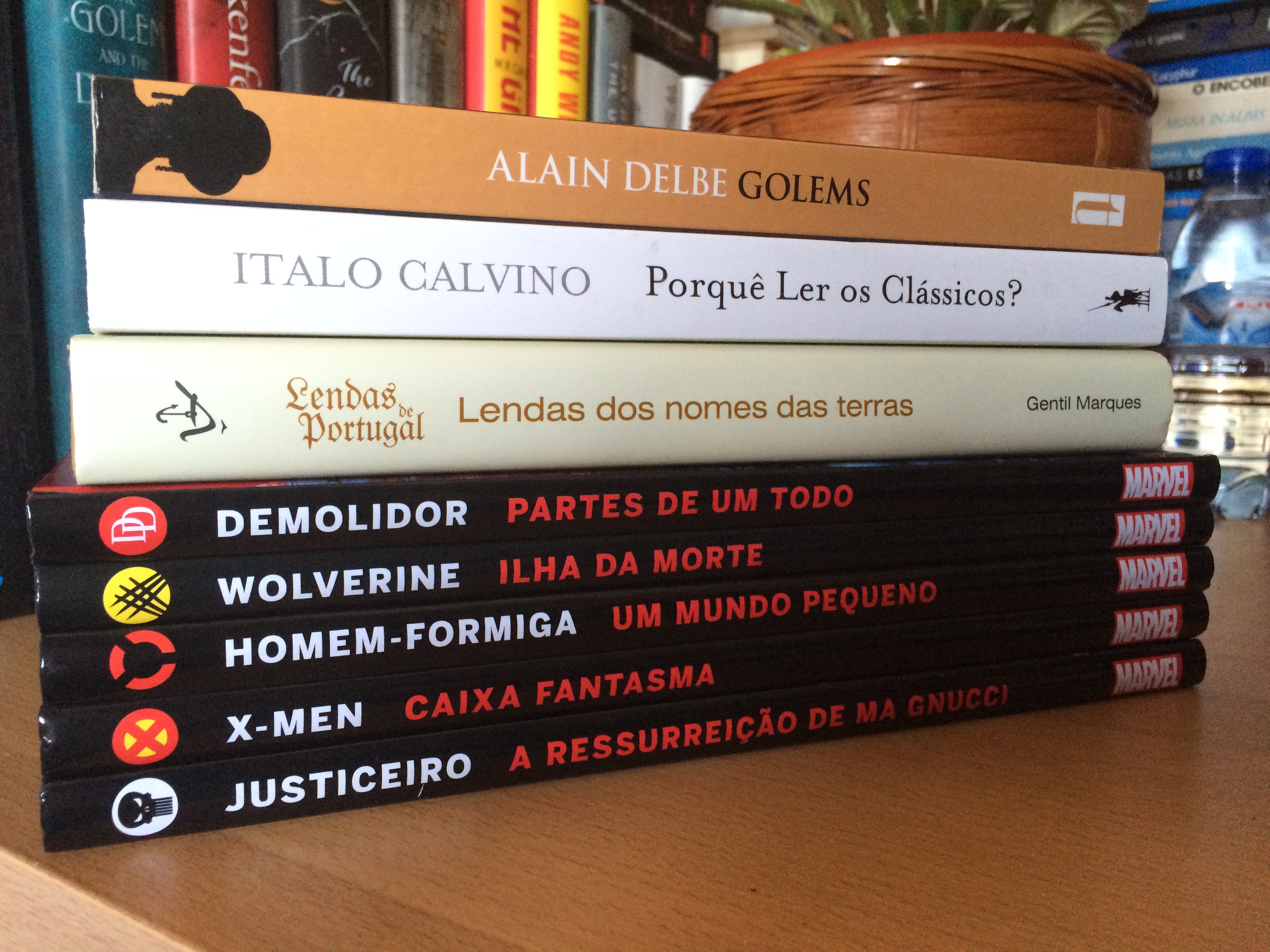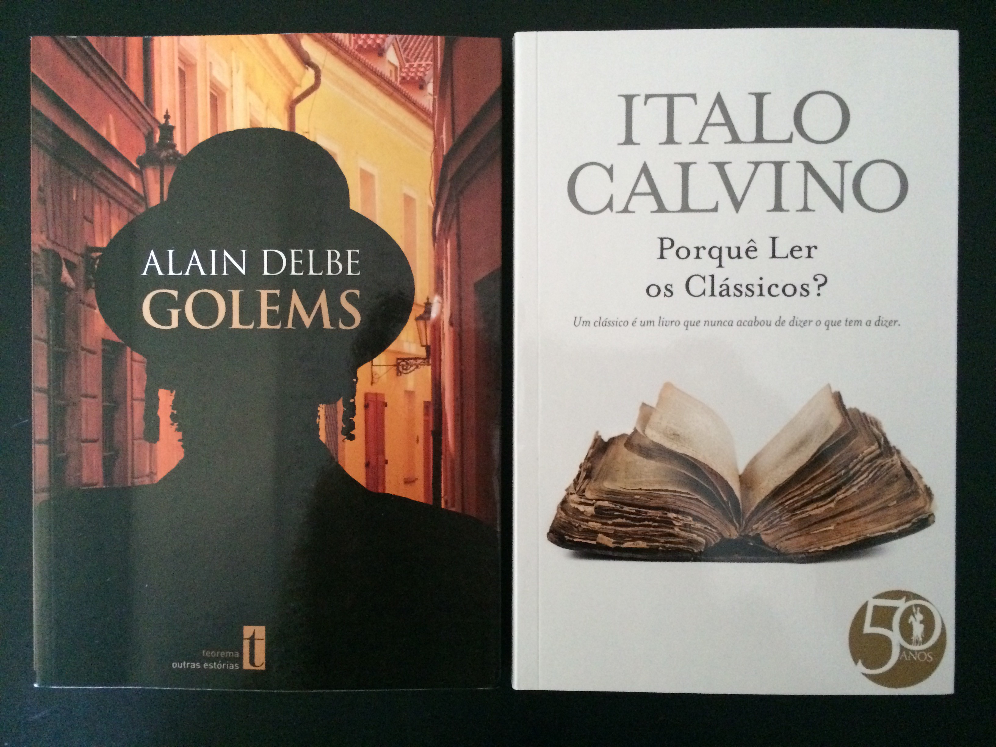 Ao lado de Golems encontra-se Porquê ler os clássicos de Italo Calvino. Eu diria mais. Porquê ler o livro de Calvino, um livro sobre livros, ao invés de ler os ditos clássicos. O livro começa por discorrer sobre o conceito de clássico, apresentando vários sinónimos (mais de uma dezena) e interpretações da palavra que, por vezes, é usada de forma demasiado leviana. Foi esta introdução que me levou a pegar no livro. No índice vejo alguns livros conhecidos que irei rever por outros olhos, bem como livros que, nunca tendo livro, sinto bastante curiosidade.
