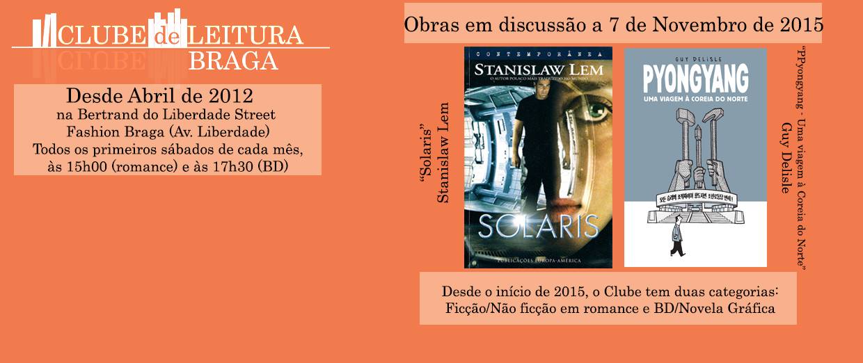 O Clube de Leitura de Braga irá reunir amanhã, na Bertrand de Braga, para discutir duas obras – Solaris de Stanislaw Lem e Pyongyang – Uma viagem à Coreia do Norte de Guy Delisle. A discussão de Solaris está agendada para as 15h00, enquanto que a de Pyongyang está agendada para as 17h30.