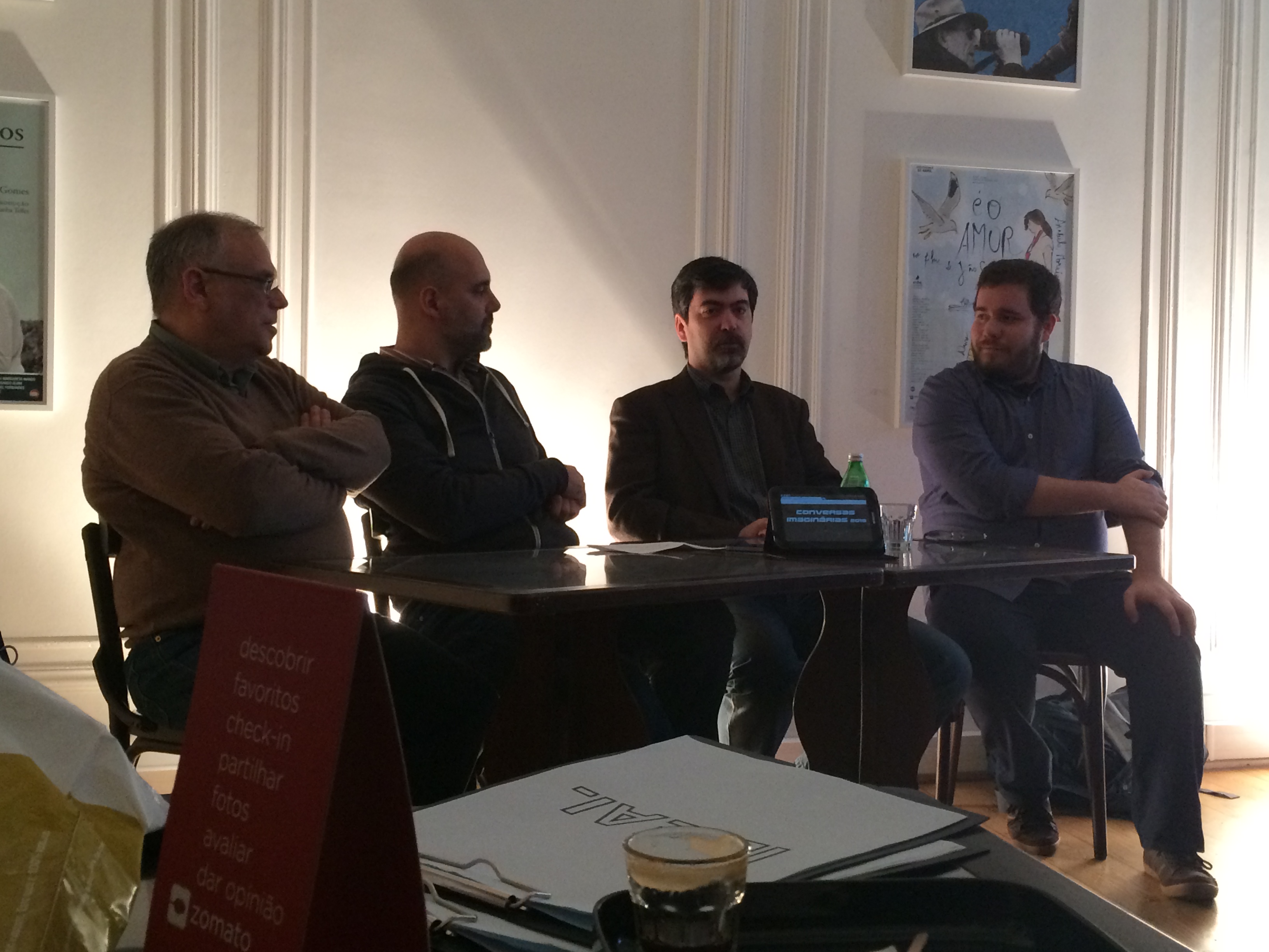 Com esta temática João Barreiros e Luís Filipe Silva aproveitaram para falar um pouco da experiência de escrever, em conjunto, Terrarium, um livro de ficção científica que foi publicado inicialmente na Caminho. O livro foi revisto recentemente por ambos e a nova edição vai ser lançada pela Saída de Emergência, no início do próximo ano. Sim – para o ano prevê-se o lançamento de um livro de ficção científica português! Hurray!