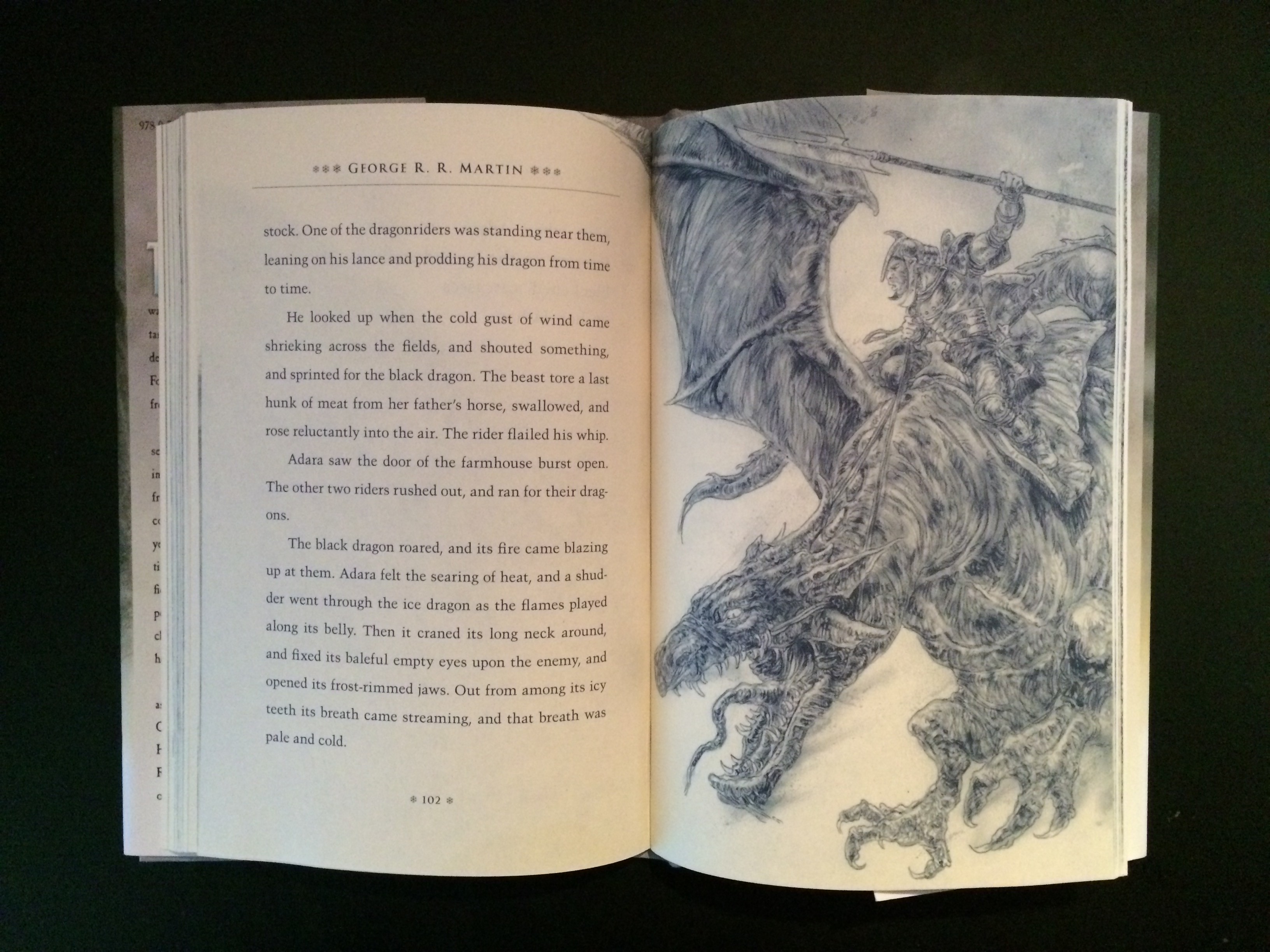 Neste livro, The Ice Dragon, a temática é mais infantil, pelo que Royo explora os seus belos dragões em magníficas ilustrações que ocupam as duas páginas, acompanhando bem um conto de George R. R. Martin que, sem elas, não teria metade da magia.