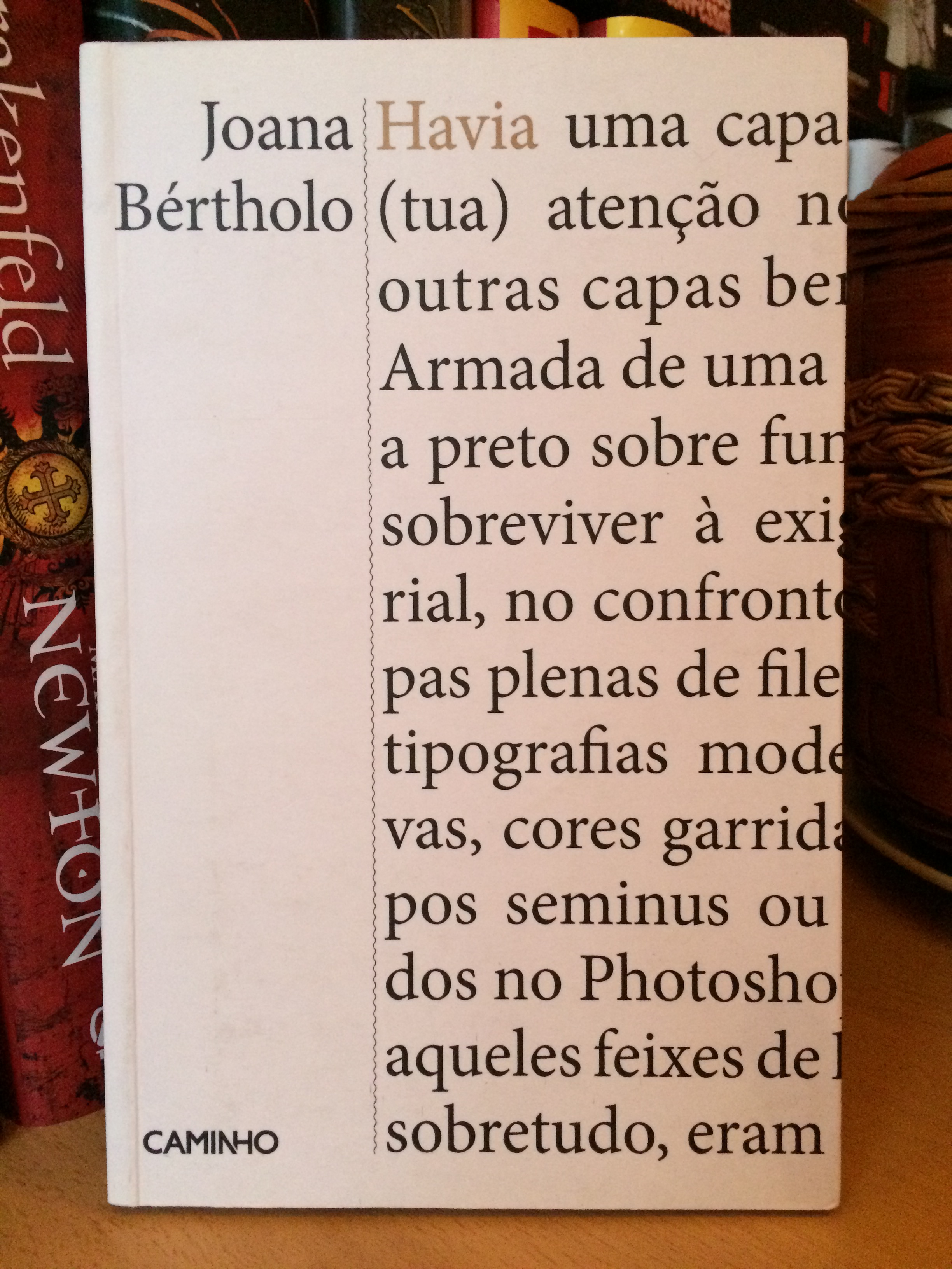 Havia uma capa a tentar chamar a (tua) atenção no meio de tantas outras capas bem mais vistosas. Armada de uma humilde impressão a preto sobre fundo branco, tentava sobreviver à exigente peleja editorial, no confronto com as outras capas plenas de filetezinhos dourados, tipografias moderninhas e exclusivas, cores garridas, imagens de corpos seminus ou pelo menos tratados no Photoshop, efeito 3D e todos aqueles feixes de luz. Os feixes de luz, sobretudo, eram difíceis de superar.