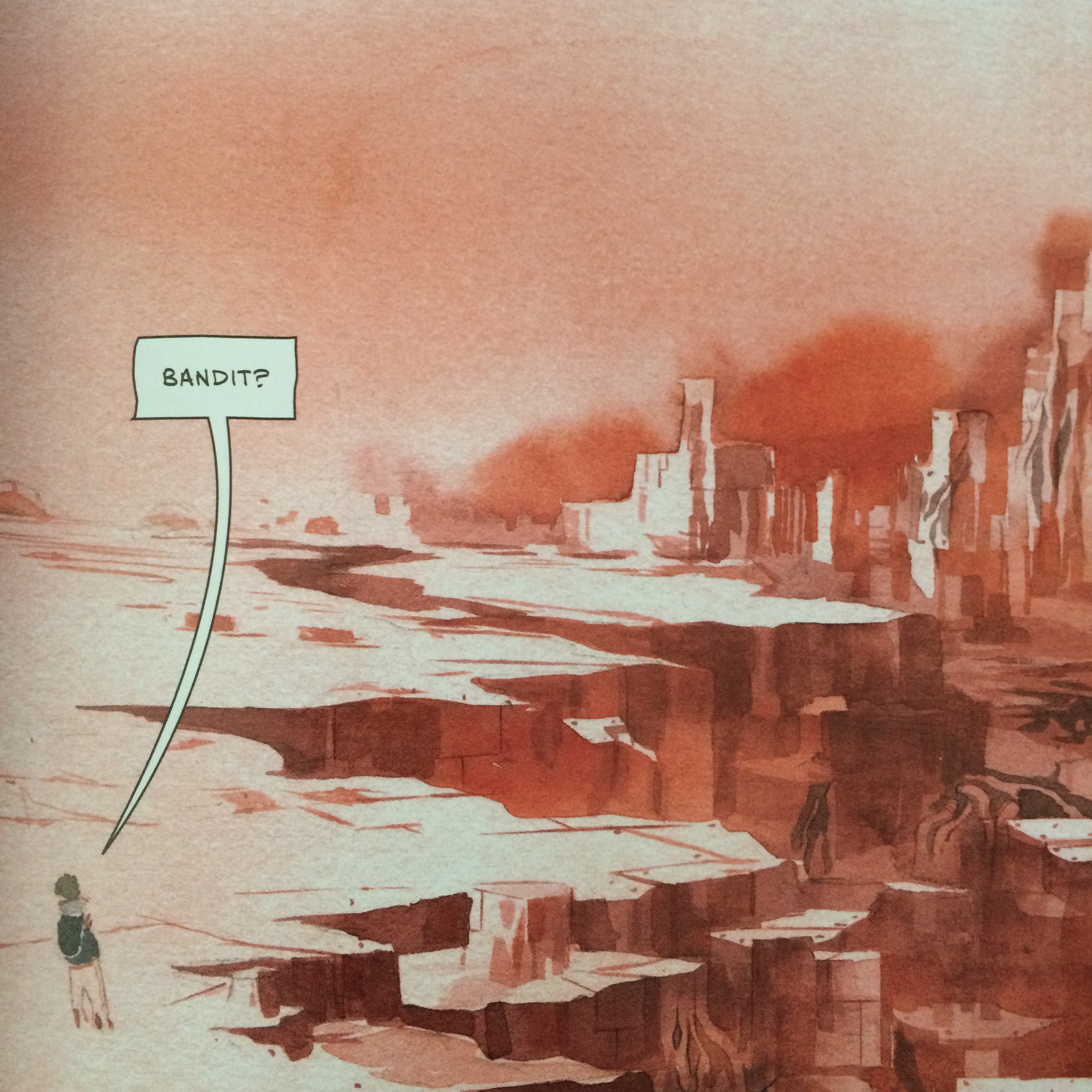 O aspecto gráfico não é dos meus favoritos – se em Low a pouca definição dos desenhos funciona principalmente nos grandes planos conferindo estranheza e simultaneamente fascínio, factor que é exacerbado pelas cores exuberantes, aqui torna as expressões pouco perceptíveis. Esta característica não se estende às páginas sem coloração que primam pelo maior detalhe. As cores mais homogéneas, contrastando leves azuis e leves vermelhos não ajuda. Ainda assim, quando se começa a ler, a história ganha vida própria e o conjunto funciona muito melhor do que esperava – no final já nem me recordava da pouca definição das imagens.