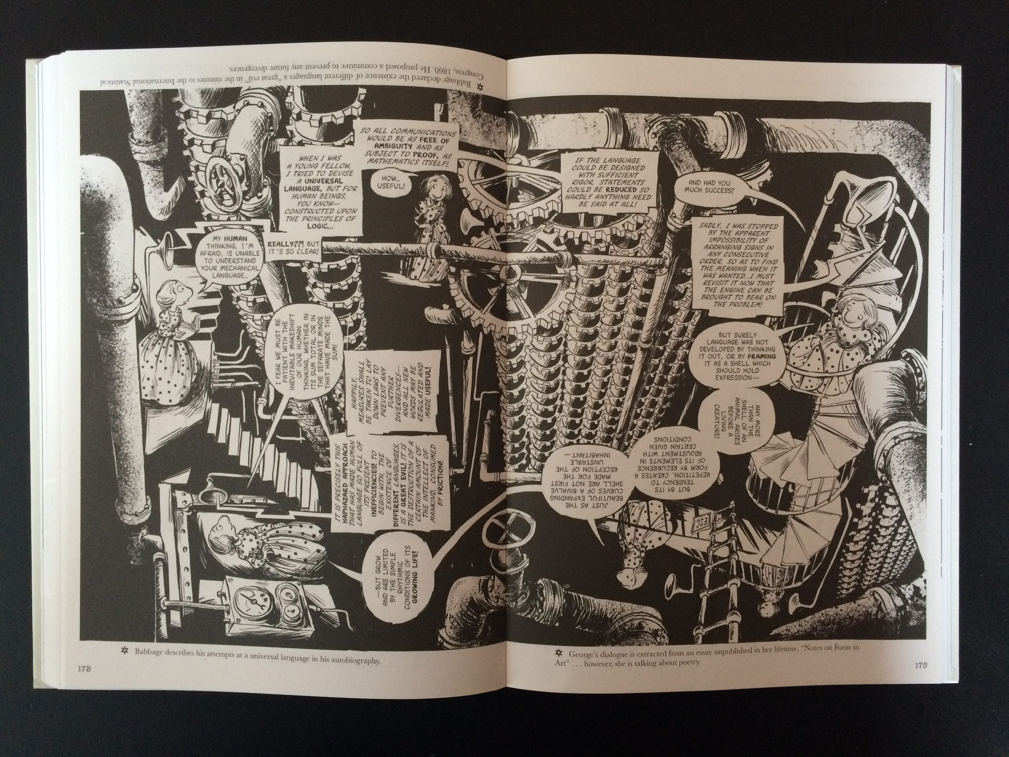 Entre o ar caricato de Lovelace e a loucura de Babbage, a história desenrola-se em apaixonantes tiras a preto e branco, carregadas de engrenagens e maquinetas, onde não faltam as pequenas tiradas geek, seja a satirizar as crenças da época, seja a expor o génio pouco convencional de algumas personagens, seja pela apresentação de uma perspectiva intensamente analítica onde os acontecimentos são racionalizados.