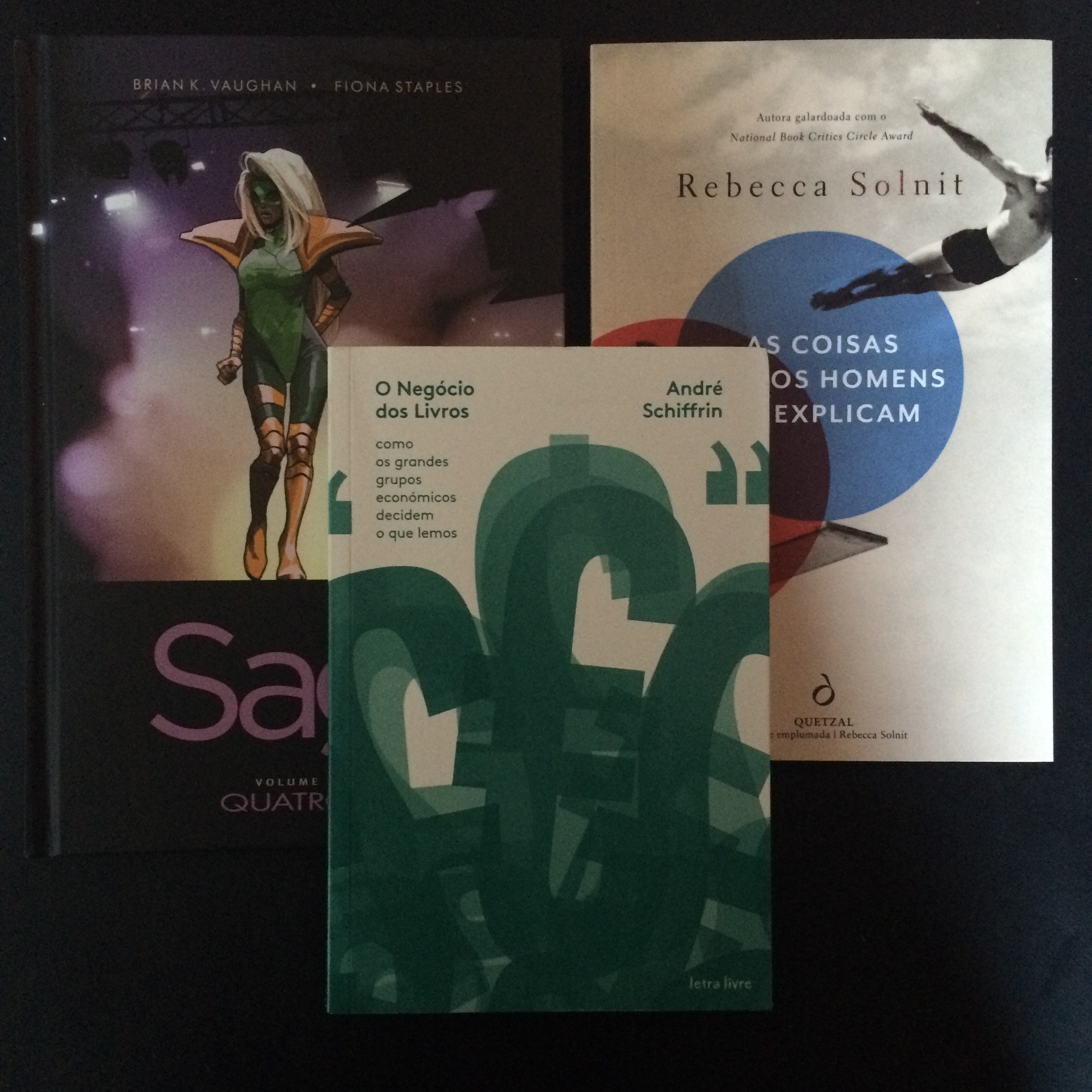 113 – Saga – Vol. 4 – Brian J. Vaughan e Fiona Staples – Depois das aventuras mirabolantes desta família pelo espaço, a fugir de mercenários e militares altamente treinados, finalmente encontram um poiso mais calmo onde a menina pode crescer em paz. Ou quase. A rotina quase dá cabo do relacionamento amoroso e faz com que a família se separe. Neste volume contam-se as circunstâncias em que tal aconteceu. Saga continua com os pormenores imaginativos, as situações caricatas e as personagens suficientemente dementes para aguentar e estimular uma boa história;