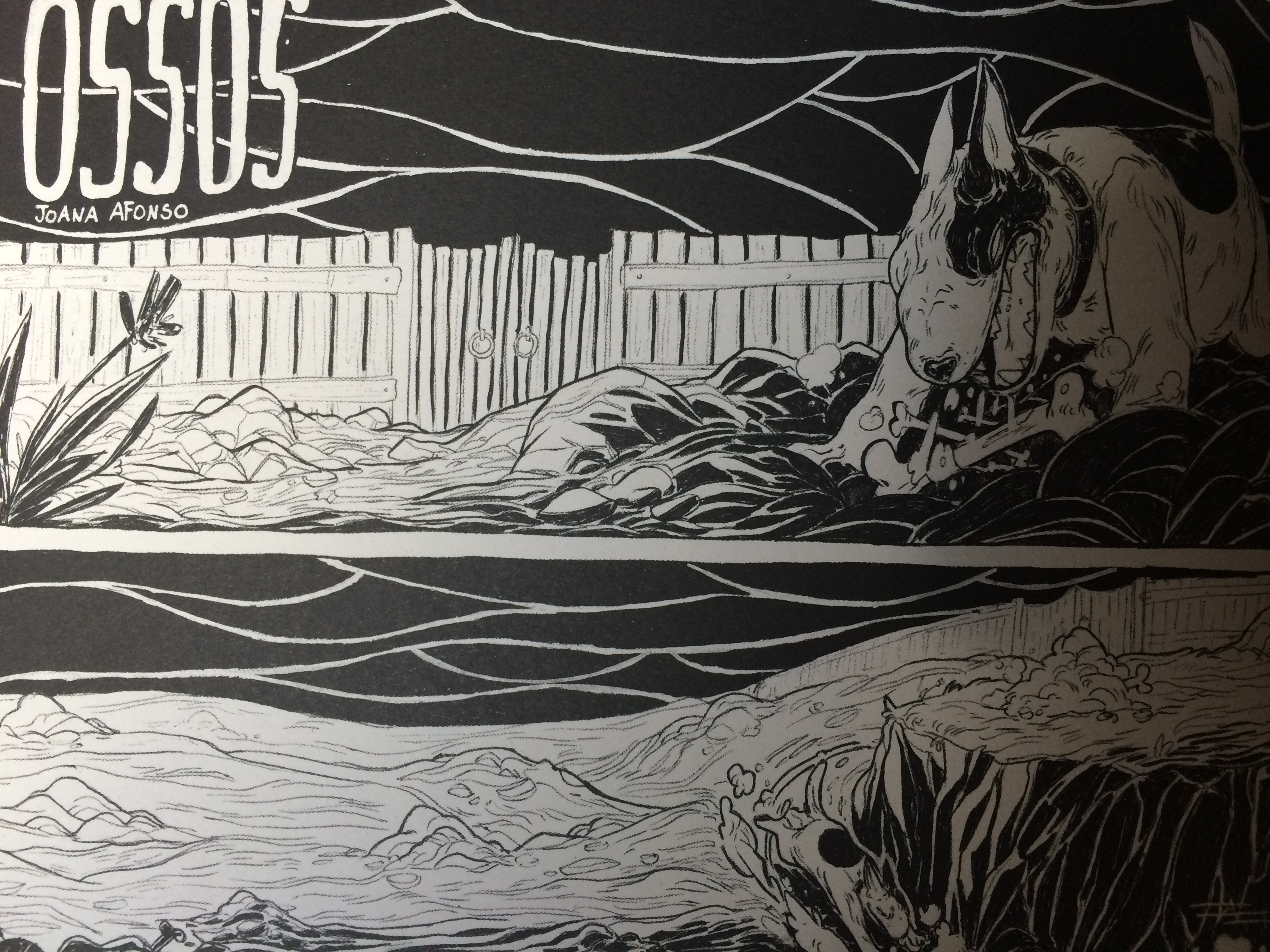 A compilação abre com o estilo característico de Joana Afonso, uma das que mais gostei porque, apesar de ser bastante simples e sem diálogos, consegue ser divertida e entregar horror. A segunda história de Tiago Pimentel utiliza o conto tradicional do lobisomen, obrigado a correr fado.