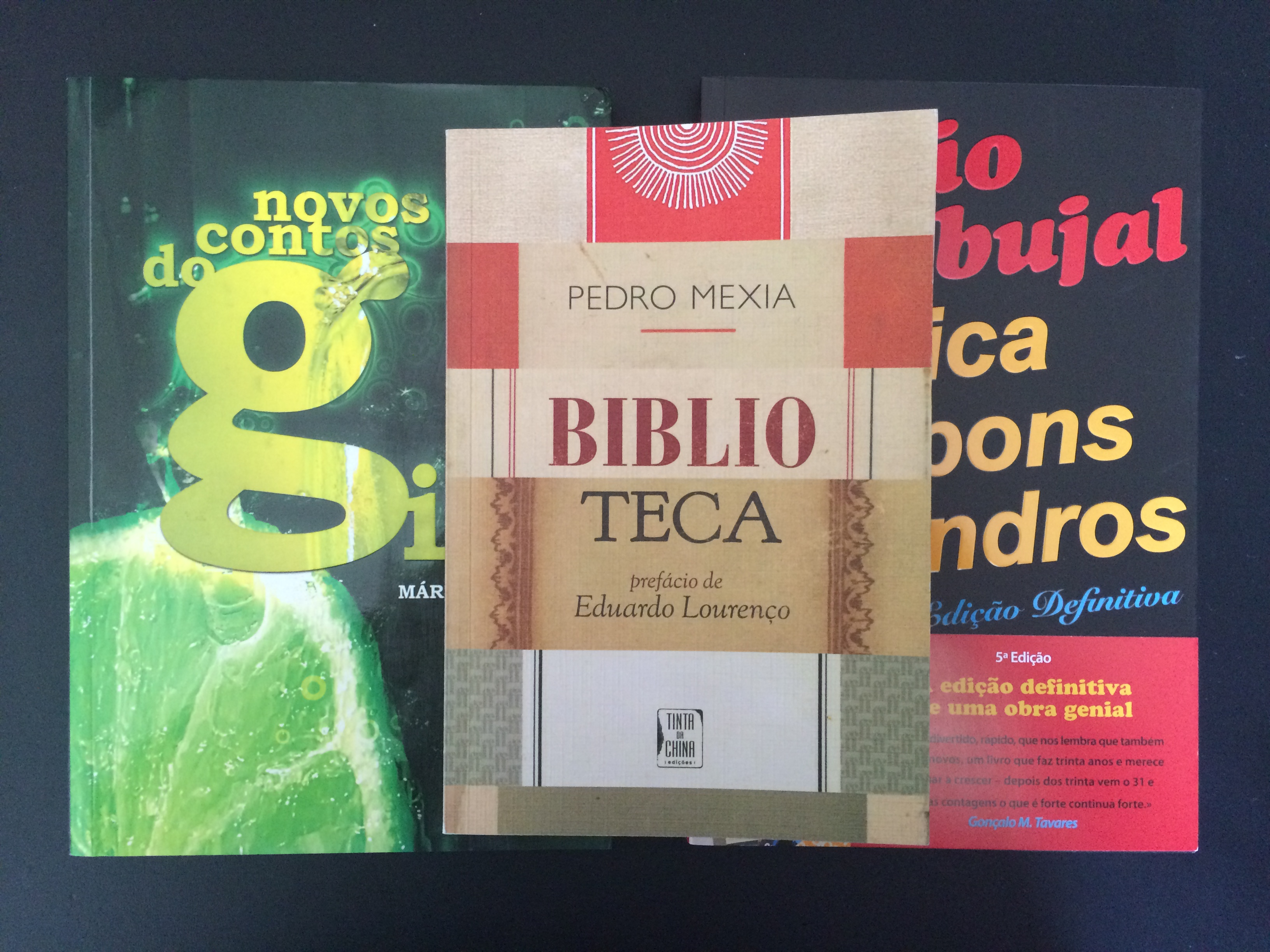 Contos do gin tónico de Mário Henrique-Leiria possui diversos contos do autor em vários géneros e perspectivas, algumas histórias cómicas e divertidas, outras com pitadas de ficção científica – um pouco de tudo. Assim que decidi a comprar Novos contos do gin. Enquanto Crónica dos bons malandros de Mário Zambujal é um livro sobre o qual tenho grande curiosidade há demasiado tempo, Biblioteca de Pedro Mexia faz parte daquele grupo de livros sobre livros que de vez em quando gosto de ler. Este (que já li entretanto) é pouco envolvente e apaixonante, mas já me convenceu a adquirir alguns livros.
