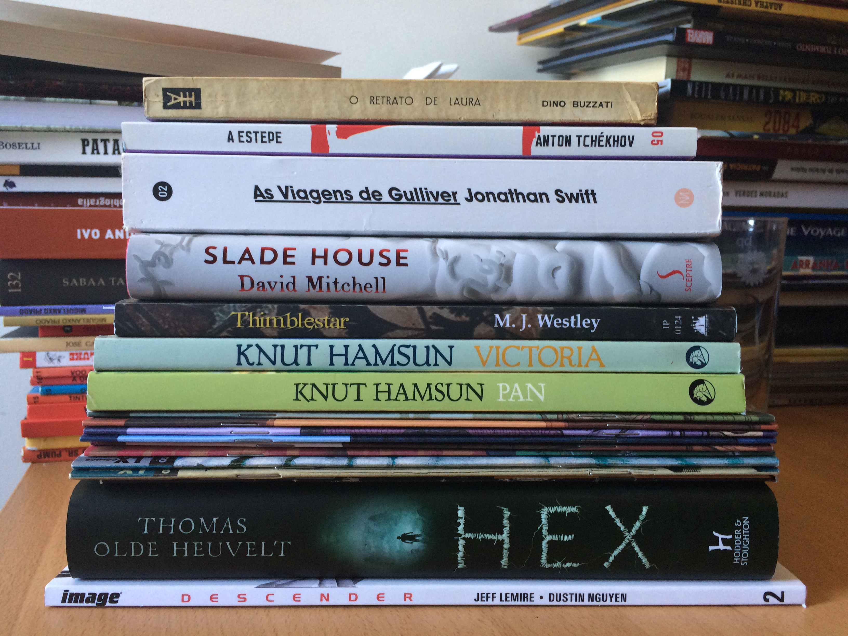 O que uma passagem na Leituria faz! Não, não foram todos comprados nessa livraria, mas se o orçamento já tinha sido desbastado pelas várias passagens na Feira do Livro, a desgraça total veio com a horrível ideia de passar na Leituria. É que, ainda por cima, estava em promoções e, entre os vários livros usados disponíveis encontrei algumas verdadeiras pechinchas.