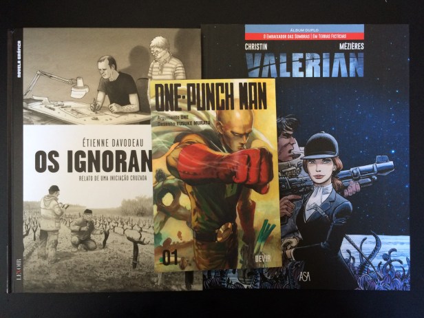 139 – One Punch Man. Vol. 1 – One e Yusuke Murata – Não estou habituada a ler este género, mas achei este volume fabuloso. O nosso herói é meio deprimido, principalmente pela facilidade com que acaba com os monstros, num só murro. Com uma excelente qualidade gráfica, por vezes em desenhos detalhados, por vezes em imagens mais estrondosas, apresenta um herói pouco típico em episódios ligeiramente cómicos pelo tom;
