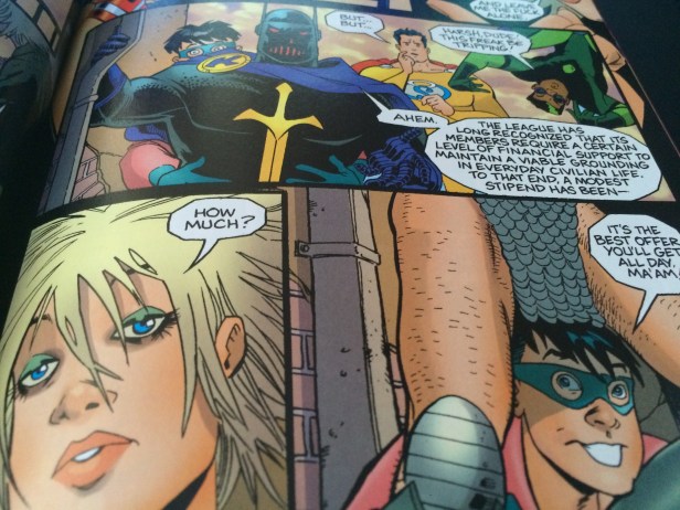 Nessa mesma noite acorda com um esquadrão de super-heróis à janela, prontos para a enquadrar no novo ofício, nobre e honrado, mostrando-lhe que a remuneração associada é vantajosa. Aceita. Claro. Mas na sua primeira missão humilha o vilão urinando-lhe em cima o que levanta sérios problemas para a imagem polida dos super-heróis.
