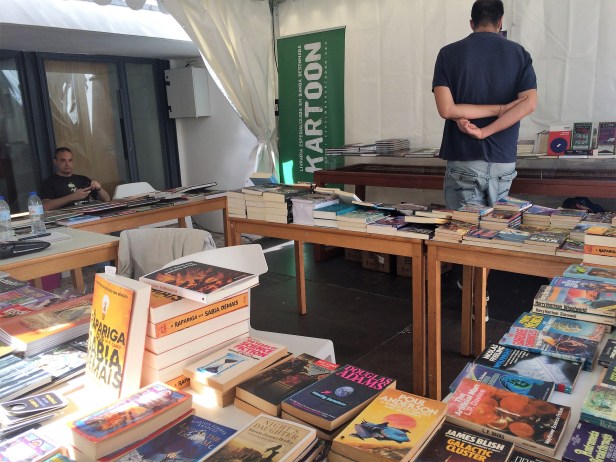 Por outro, é de realçar a maior ocupação do espaço da Biblioteca Orlando Ribeiro que deu nova vida ao espaço – era impossível não reparar na tenda que ocupava parte do pátio com uma pequena feira do livro, onde se viam exemplares de livros de ficção científica e fantasia, sem faltarem os da autoria de Mike Carey, o escritor convidado deste ano. Nesta pequena feira do livro exterior encontravam-se a Leituria e a Dr. Kartoon.