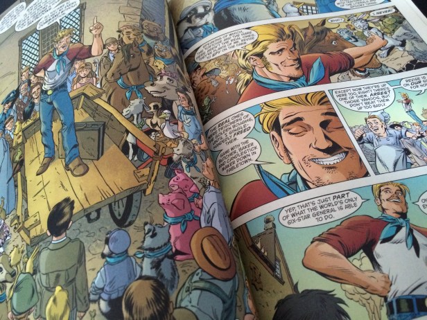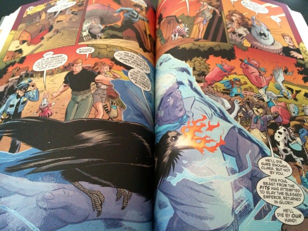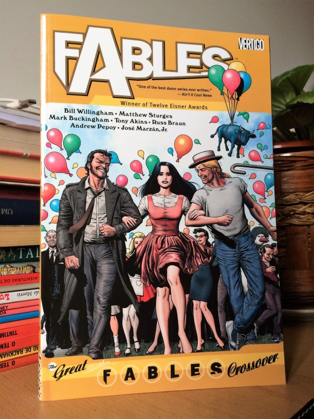 Visualmente interessante (ainda que menos do que o próximo, o 14 volume – sim, sem querer troquei a leitura de ambos, sem grande prejuízo) The Great Fables Crossover mostra como se tornam independentes e passam a ser responsáveis pelo seu próprio destino.