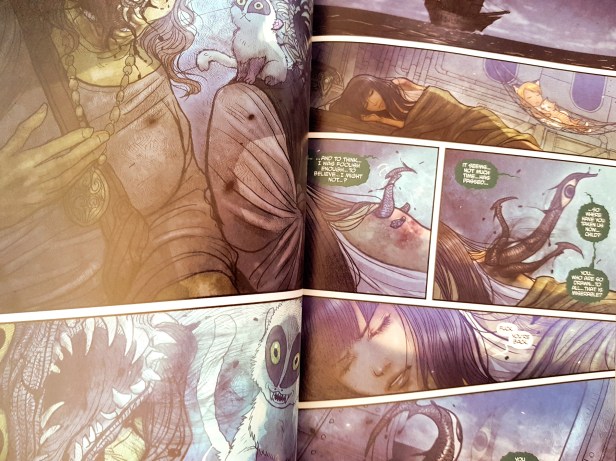 Contendo elementos ficcionais diversos, com uma forte mitologia, suportada pelos relatos históricos dos gatos que enquadram a sociedade actual, Monstress é uma série visualmente avassaladora na forma como sobrepõe o monstruoso (presente sobre a forma de monstros e planos maquiavélicos) à inocência das personagens (que se assemelham a crianças, valentes e leais).