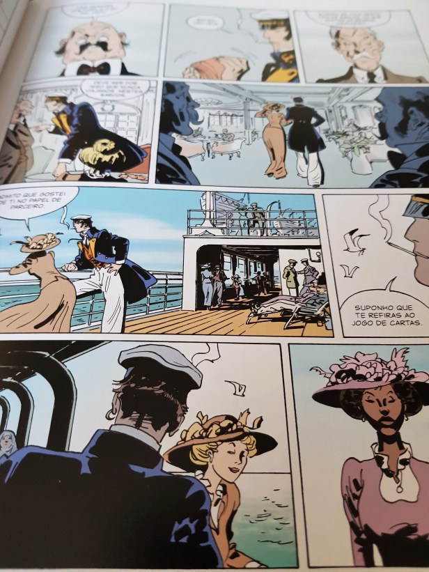 Não que tenha lido muitos livros de Corto Maltese, mas em comparação aos que li noto algumas diferenças na personagem. Corto Maltese parecia-me mais silencioso e provocador, abrindo a boca em raras ocasiões, para apresentar pequenas frases enigmáticas, expor raciocínios quando deles precisava, ou para lançar comentários que indignassem os seus adversários.