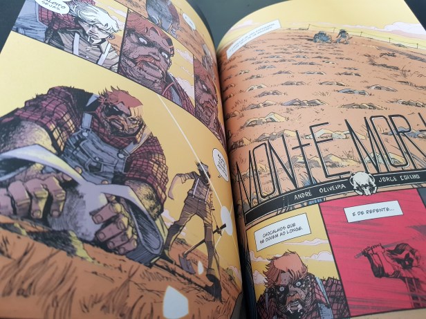 Se, por sua vez, em Sem rede de Marta Teives e Pedro Moura assistimos a uma história de encontros e reencontros onde o silêncio se alarga abruptamente, Monte Morte (a história a cores deste volume) junta a capacidade narrativa de André Oliveira com o desenho brutal de Jorge Coelho numa história carregada de violência e silêncio rural, onde os segredos da povoação mantém os costumes antigos.