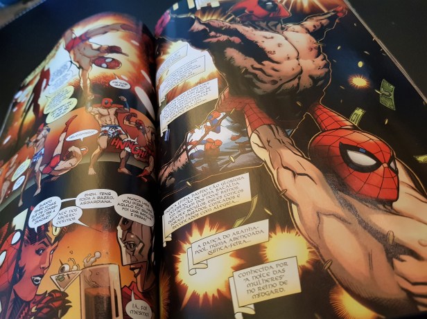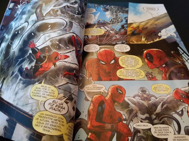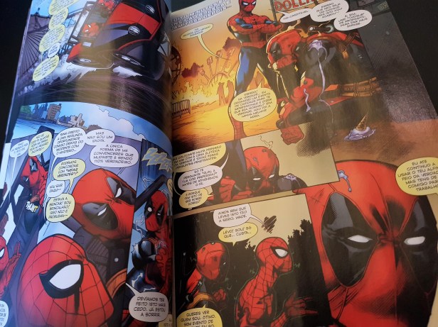 Quando peguei neste volume o que esperava era uma história divertida carregada de piadas fáceis e trocadilhos, onde ambos os heróis expressam o seu humor típico, o homem-aranha com tiradas demasiado pensadas (trocadilhos fáceis que nem sempre são engraçados) e javardice do lado do Deadpool. O que obtive foi algo semelhante, com uns pózinhos de algo mais.