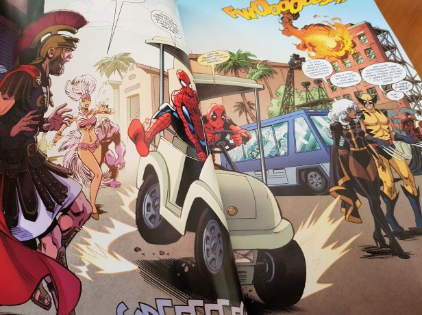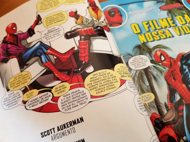 Depois dos próprios heróis apresentarem a produção de um filme centrado em Deadpool que os levará a uma batalha contra um vilão improvável (numa série de páginas leves de comentários cómicos onde não falta o piscar de olho à forma como se fazem as adaptações cinematográficas, segue-se a história onde o Deadpool conheceu o Homem-aranha.
