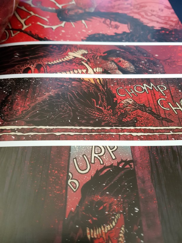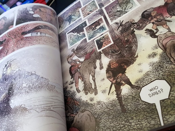 Ainda que o estilo de desenho não faça totalmente o meu género (optando pela imperfeição anatómica e tendo alguns desenhos pouco detalhados) Beowulf tem páginas fortes pelas cores e pela acção.
