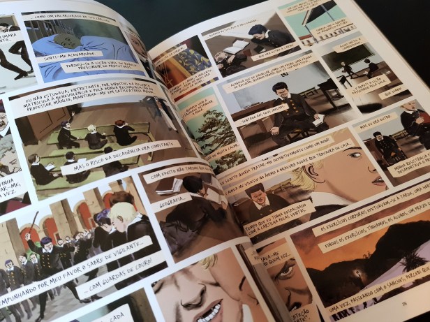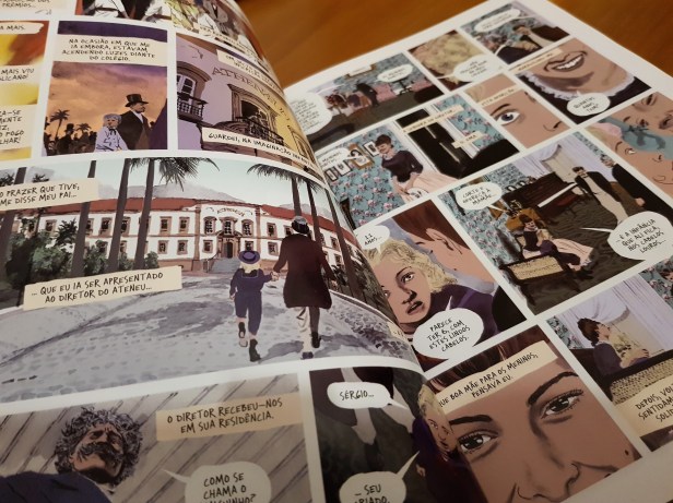 Ainda que tenha lido apenas uma outra obra de Quintanilha (mas desfolhado outras) nota-se a diferença no aspecto visual – e não só pelas cores! Com uma história maior que integra a obra original, O Ateneu dá especial foco às expressões, usualmente carregadas de emoções negativas, conflitos e ódios, dos restantes alunos. Tratam-se de crianças carregadas de vícios, habituadas a ter o que desejam e que vêem, nas restantes, um meio para o obterem. O Ateneu revela-se não como um local de formação, mas de corrupção.