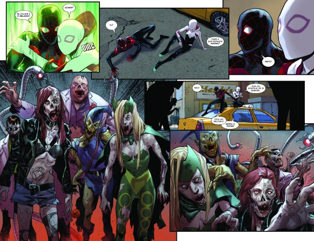 “SOMOS IGUAIS HOJE AO QUE FOMOS OUTRORA.” Ben Reilly estava convencido que a tecnologia da New U iria tornar o mundo melhor e, para convencer Peter a juntar-se a ele, trouxe de volta vários dos seus amigos e entes queridos já falecidos, mas também alguns dos seus piores inimigos. Como Peter não foi na conversa, Ben colocou em andamento um plano diabólico que por pouco não deu origem a um verdadeiro apocalipse zombie. No rescaldo deste tenebroso episódio, urge responder a várias questões importantes para o desenlace: será que Ben Reilly morreu realmente no combate final contra o Doutor Octopus? Onde está o Chacal original (Miles Warren)? O que vai acontecer a Hobie Brown (Gatuno)? Num outro contexto continuamos a seguir a história do jovem Miles Morales após os eventos da Guerra Civil II. Ao tentar resolver o mistério que envolve o desaparecimento do pai, Miles acaba por encontrar o seu primeiro grande amor: Gwen Stacy, a Mulher-Aranha da Terra-65. Mas as coisas não correm como previsto. Numa viagem alucinante entre várias dimensões, que inclui a participação de Peter Porker, o Espetacular Porco-Aranha da Terra-8, Miles consegue finalmente encontrar o pai, mas apenas para descobrir que naquela dimensão se trata de um poderoso criminoso, conhecido como “Escorpião”, que planeia dominar as várias dimensões do multiverso.