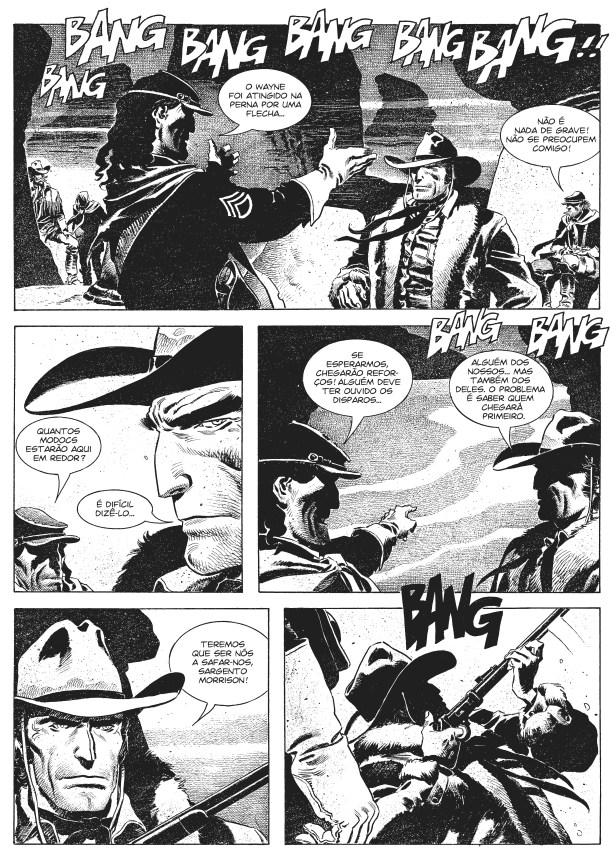 Chega este mês ao mercado português um novo volume de Tex! Este livro foi apresentado na 5ª Mostra do Clube Tex Portugal (28 de Abril) e será distribuído durante o mês de Maio. Deixo-vos com a sinopse e algumas páginas fornecidas pela editora: