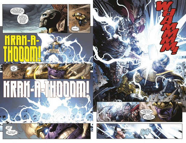 A GRANDE GUERRA DO INFINITO. Os Construtores. Engenheiros de tudo o que existe. Uma raça tão velha como o próprio tempo. Quando a Terra é considerada um fracasso, os Construtores marcam-na para procederem à sua destruição. Enquanto o Capitão América, e uma poderosa equipa de super-heróis nunca antes reunida, avança para o espaço para fazer frente a estes inimigos ancestrais, um velho inimigo decide tirar proveito do facto de a Terra estar desprotegida. Thanos, o Titã Louco, ataca com todas as suas forças… e onde Thanos pisa podemos esperar morte e muita devastação. Felizmente, mesmo um mundo sem Vingadores tem as suas defesas. O Homem de Ferro permaneceu na Terra, juntamente com os restantes elementos dos Illuminati, uma sociedade secreta de super-humanos que, para complicar as coisas, vive enormes tensões que podem colocar em causa a própria defesa do planeta. Com a necessidade de trabalhar em equipa, e atuar em múltiplas frentes de batalha, este é o conflito que promete mudar para sempre todo o Universo Marvel.