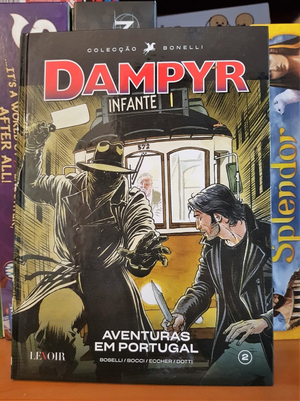 Não esperem, em Dampyr, histórias com profundidade ou introspecção. São, sobretudo, aventuras que utilizam os clichés das criaturas sobrenaturais em que se centram, não faltando as referências cinematográficas, e que aproveitam cenários conhecidos dos autores. Ainda assim, não são histórias demasiado lineares, apresentando episódios centrados noutras personagens, ou episódiso que decorrem várias décadas ou séculos antes. Não sendo uma das minhas leituras favoritas desta colecção destaca-se pelo detalhe dos desenhos que, neste caso, fazem uma grande menção a Portugal.