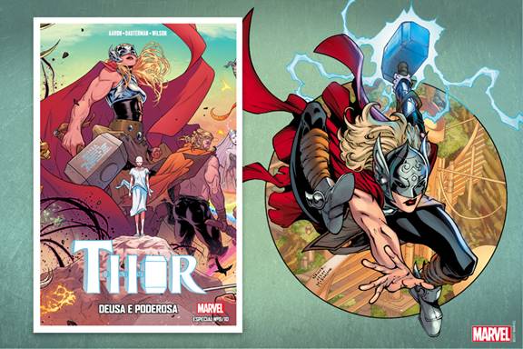 A MULHER POR TRÁS DA MÁSCARA”. Há pouco tempo, depois de Thor Odinson ter sido considerado indigno de empunhar o Mjolnir, uma misteriosa mulher foi capaz de levantar o martelo encantado, tornando-se a nova Deusa do Trovão! Ofendido por tamanha afronta à sua omnipotência, Odin, o “pai de todos”, tudo faz para acabar com Jane Foster, a nova Thor. Os seus inimigos são muitos, pois Asgard parece mergulhar cada vez mais no caos e a guerra ameaça espelhar-se pelos dez reinos. No entanto, a maior batalha de Jane é contra um inimigo muito mais pessoal: o cancro que está a matar a sua forma mortal. Começou com um nódulo na mama, há quase um ano. Desde então, metastizou-se, espalhando-se pelos nódulos linfáticos e agora, talvez, pelo fígado. Jane Foster luta pela vida ao mesmo tempo que tenta lidar com a ameaça de Malekith, o líder dos elfos negros… mas também com Loki.