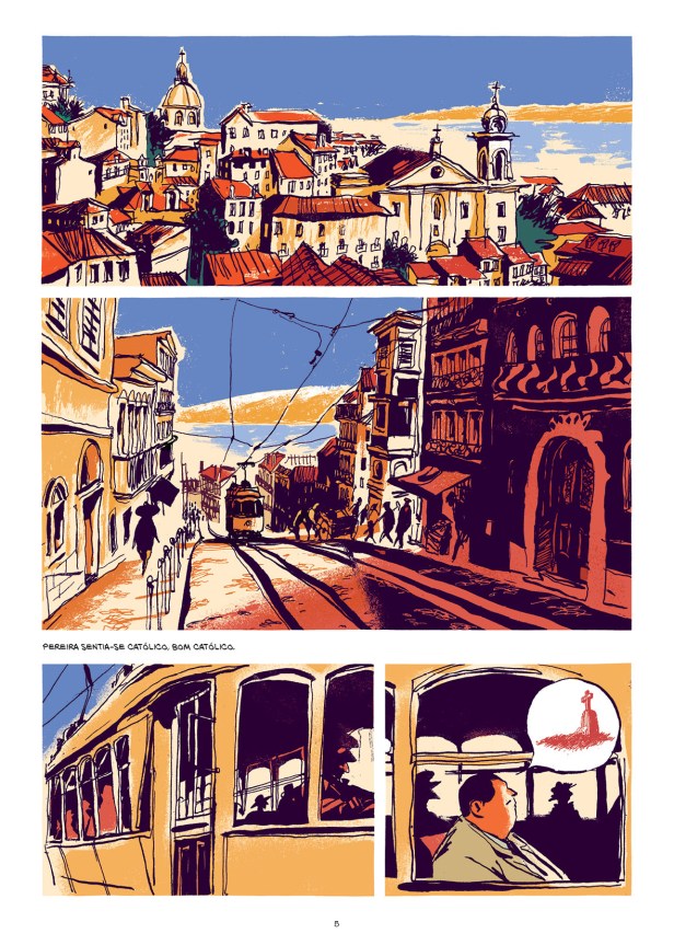 Afirma Pereira, de Antonio Tabucchi, é um dos mais belos romances do escritor italiano, que era quase um português por adopção e por paixão pelo nosso país. E é também um dos mais interessantes e complexos romances para adaptar a banda desenhada: o artista francês Pierre-Henry Gomont aceitou o desafio lançado pela sua editora, a Sarbacane, e produziu um dos mais belos e mais premiados livros de BD de 2016, num estilo que é uma verdadeira homenagem aos céus e cores do nosso país, e à sua capital, Lisboa.