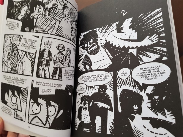 No estilo próprio de André Diniz (que já tinha tido hipótese de observar em O Idiota, publicado na colecção Novela Gráfica no ano passado) este Malditos Amigos é uma boa história, com boas tiradas sobre a doença psicológica da personagem principal que mostra a importância de nos rodearmos das pessoas certas.