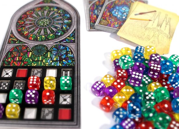 Visualmente atraente, Sagrada tem dados mas, pelo que percebi, a sua componente aleatória não conferirá vantagem directa ao jogador, antes servirão para a construção de padrões com base na cor ou no número, combinando os dados num vitral.
