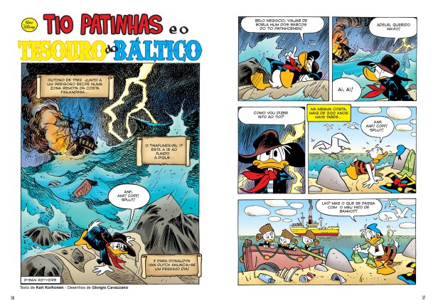 Nota: o índice na edição impressa indica, por engano, a pág. 94 a história “A Coroa dos Reis Cruzados”. Esta história será publicada na edição Tio Patinhas #7.