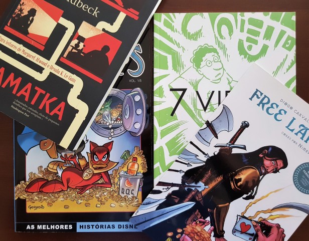 127 – Free Lance – Diogo Carvalho e Nimesh Moraji – Com a disponibilização, na Convergência, de uma série de livros de edição de autor ou de pequenas editoras, adquiri este Free Lance, um pequeno volume com duas histórias de um cavalheiro oportunista onde são tornados cómicos alguns episódios típicos das histórias de cavalheiros.