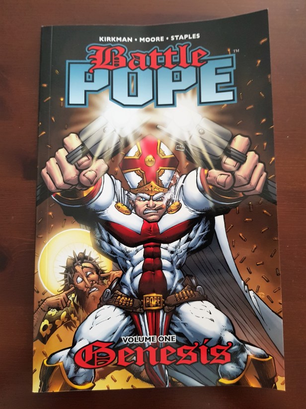 Em Battle Pope corrompem-se todas as personagens principais da Igreja Católica, desde os anjos ao Papa, passando por freiras e por Jesus Cristo, como forma de construir uma paródia movimentada e pouco profunda. Battle Pope é uma leitura inconsequente mas divertida que poderá não agradar a todos os leitores, principalmente aos que sejam religiosos.