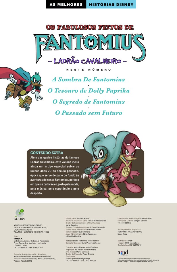 Após os cinco volumes iniciais, a coleção dedicada a Fantomius encerra com uma edição especial que revela novas informações sobre as origens do Ladrão Cavalheiro, nomeadamente a sua ligação com o Superpato. Lembramos que foi o diário do Fantomius que deu origem ao alter-ego do nosso Pato Donald.