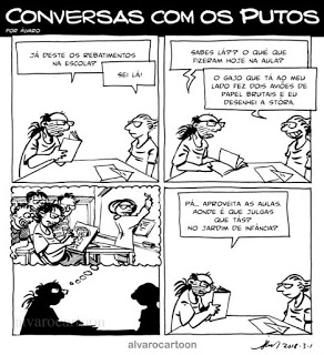 Um colega dos meus tempos da escola secundária, por volta da década de 80 do século passado, ao ler algumas destas tiras disse-me. “Nós na altura também éramos assim.”
