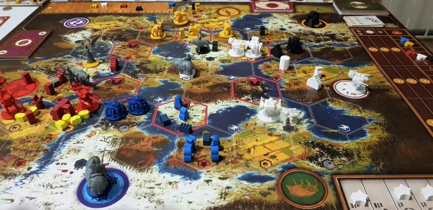 Ainda na semana anterior, mais especificamente na sexta, fomos experimentar o espaço da DICE! Encontrámos um local especialmente acolhedor e simpático, com uma ludoteca permanente e vista espectacular! Como desconheciamos o local levámos o nosso Scythe e acabámos por o experimentar a cinco (não temos a expansão), o que já andávamos a querer fazer há algum tempo para perceber as diferenças de dinâmica do jogo a dois.